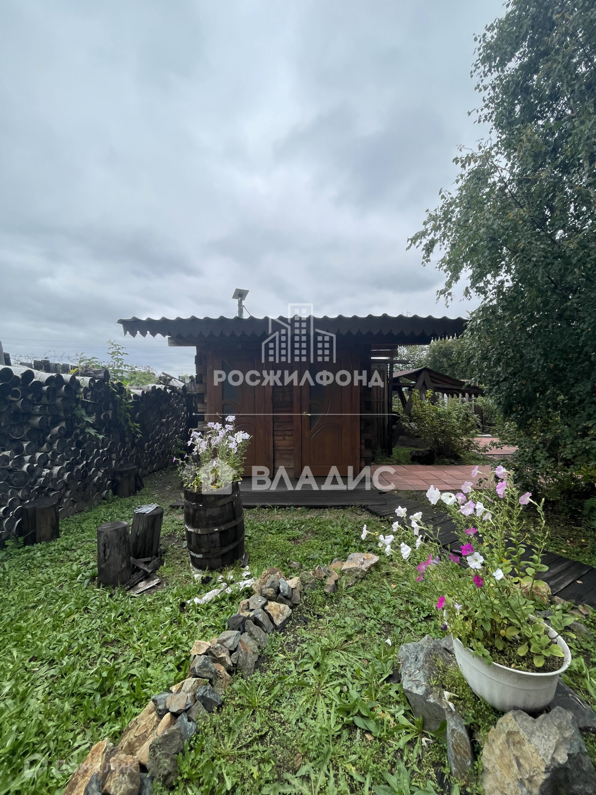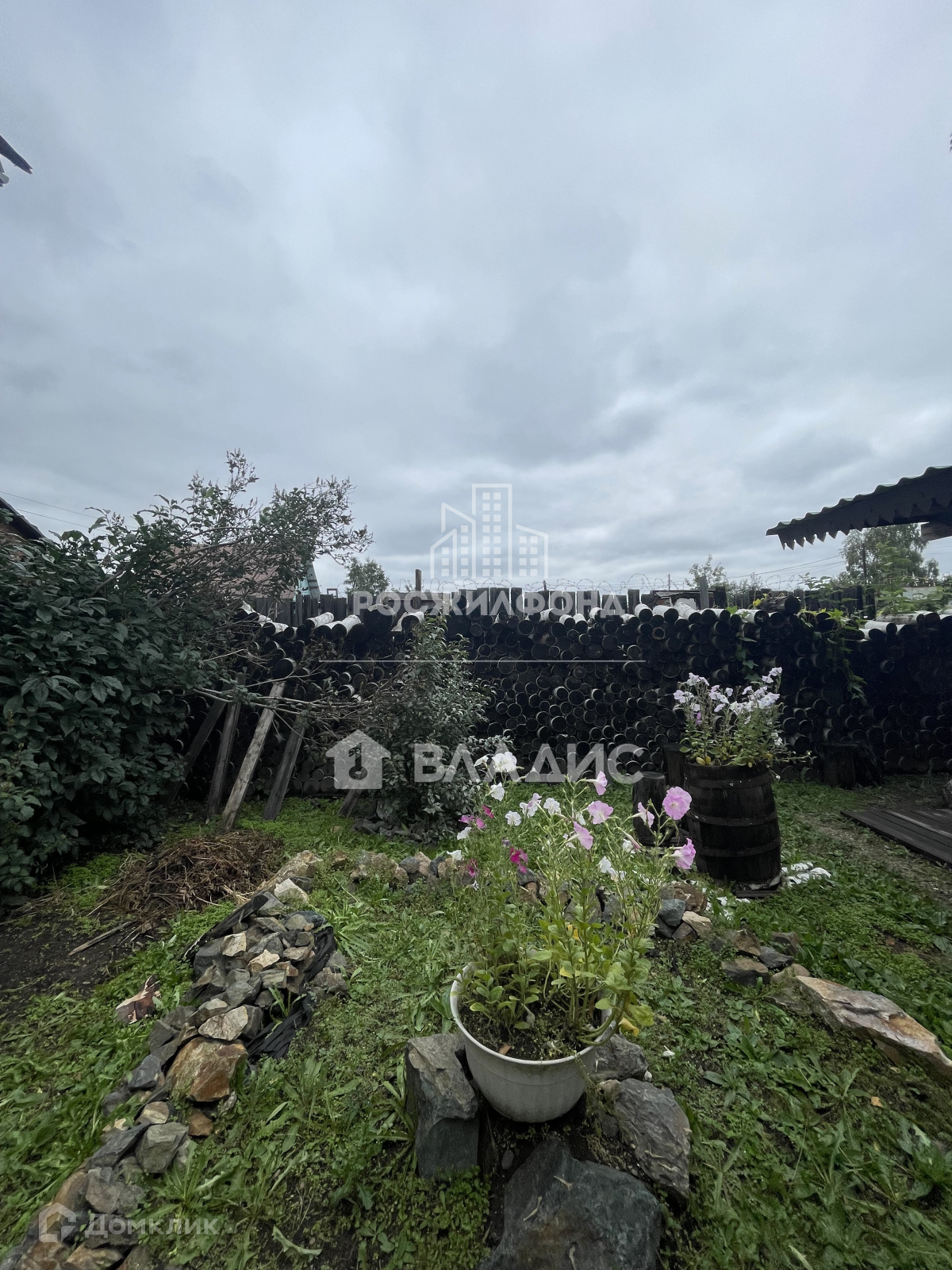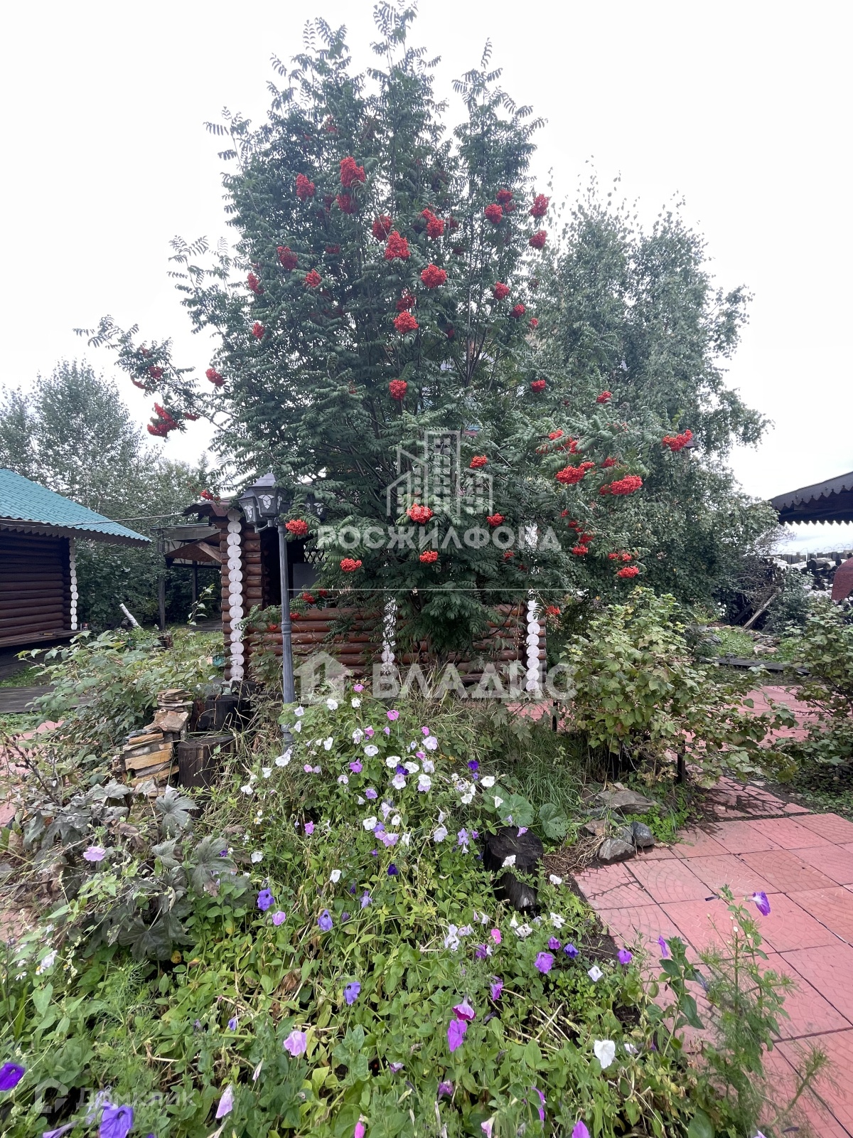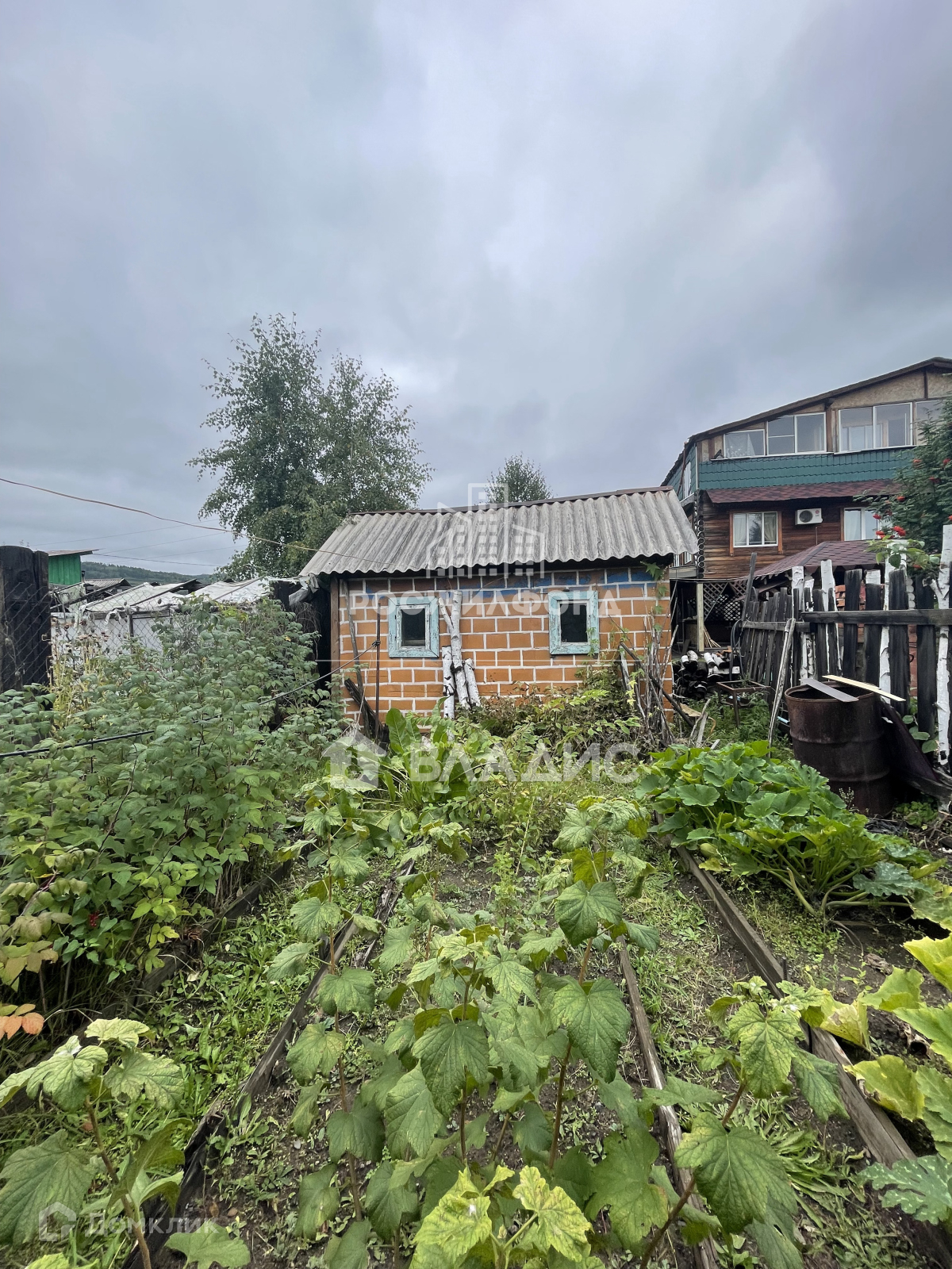 Участок разработан, имеется много насаждений: рябина, черемуха, ирга, жимолость, смородина, крыжовник, а также березы и сирень.