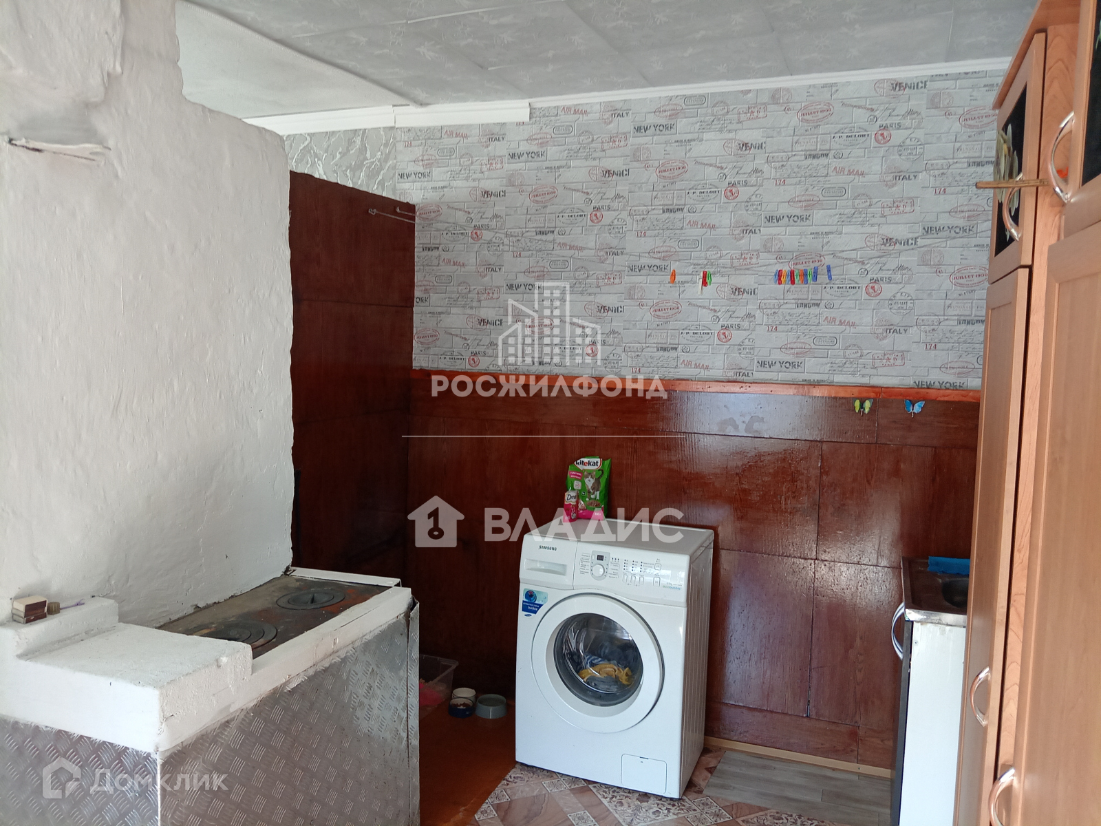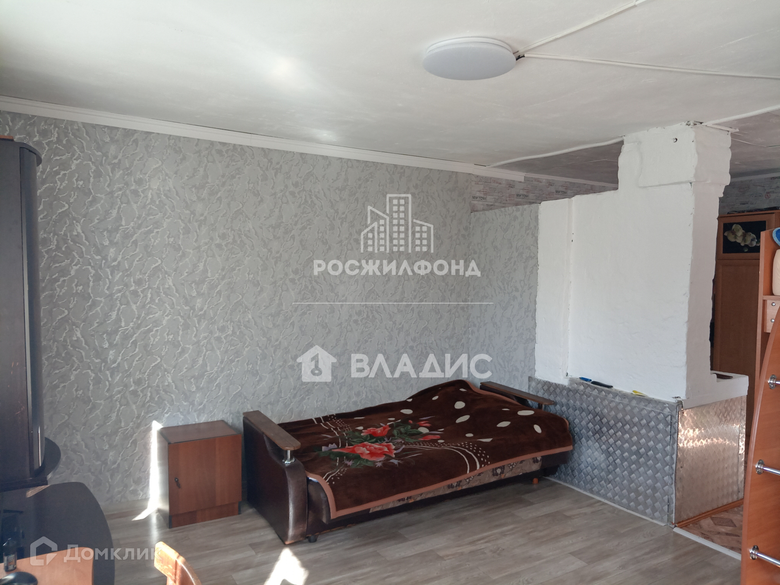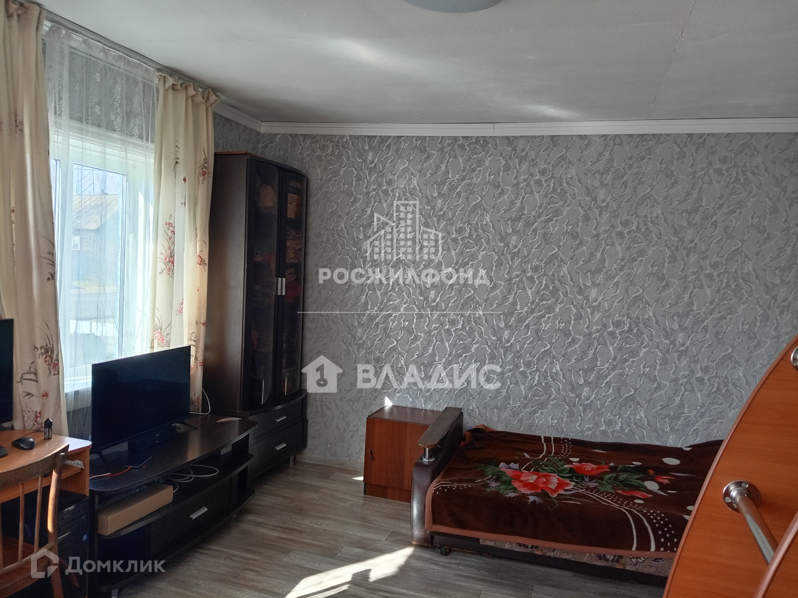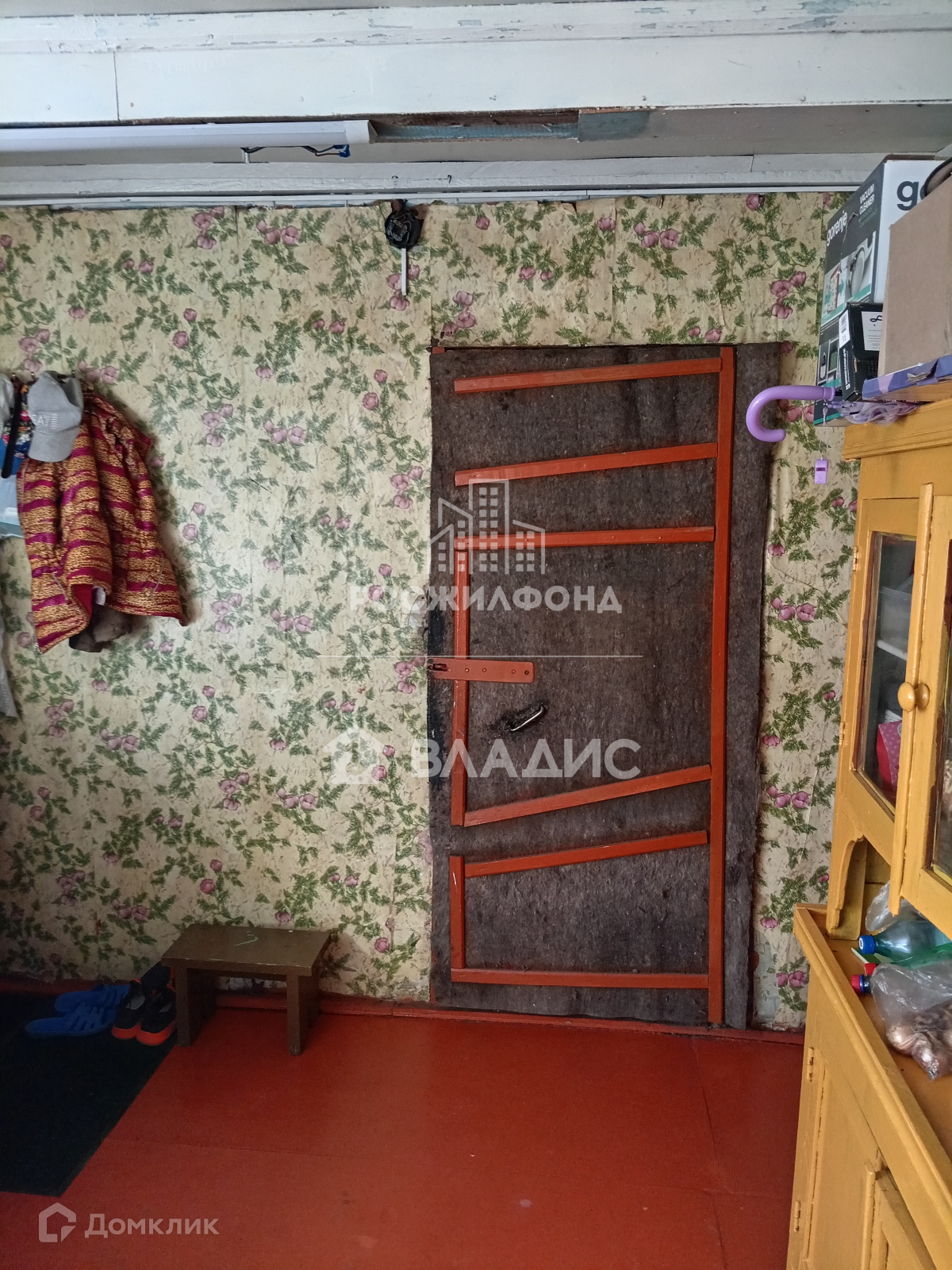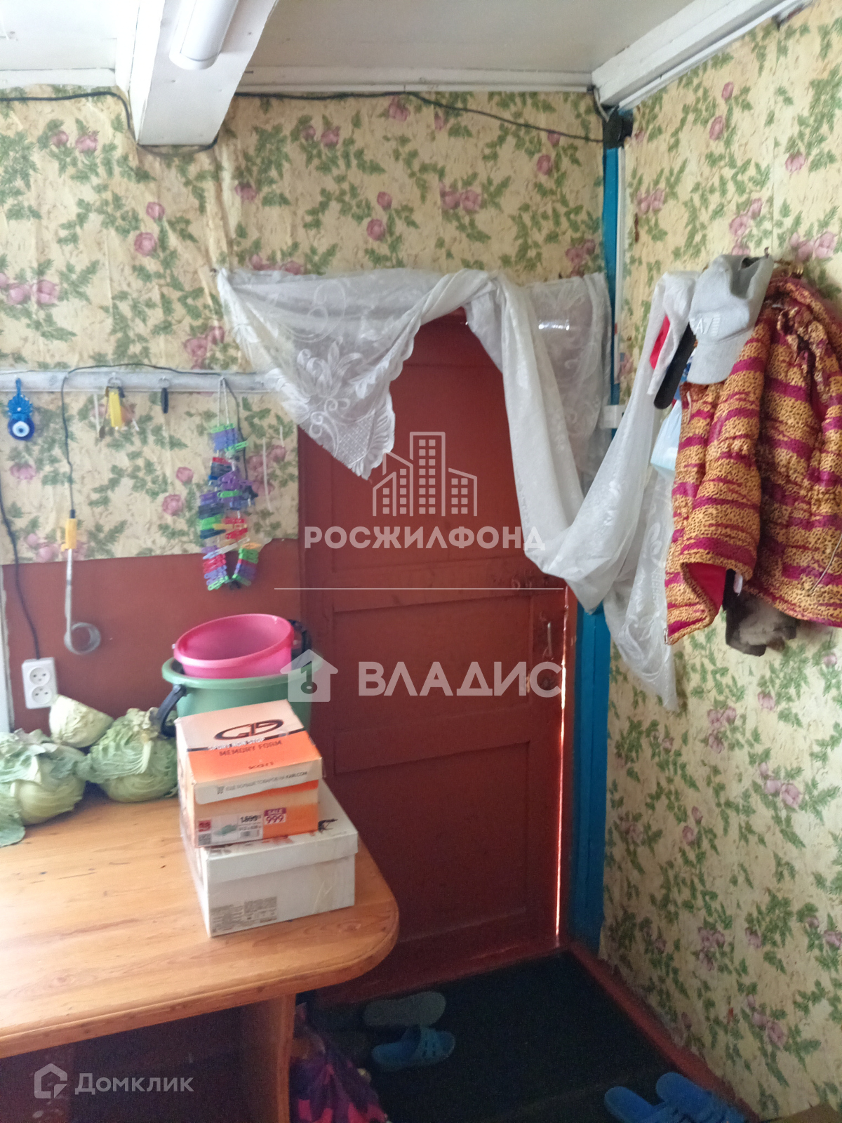 - комната и кухня (потолки - побелка, полы - дощатые, линолеум, стены - обои);