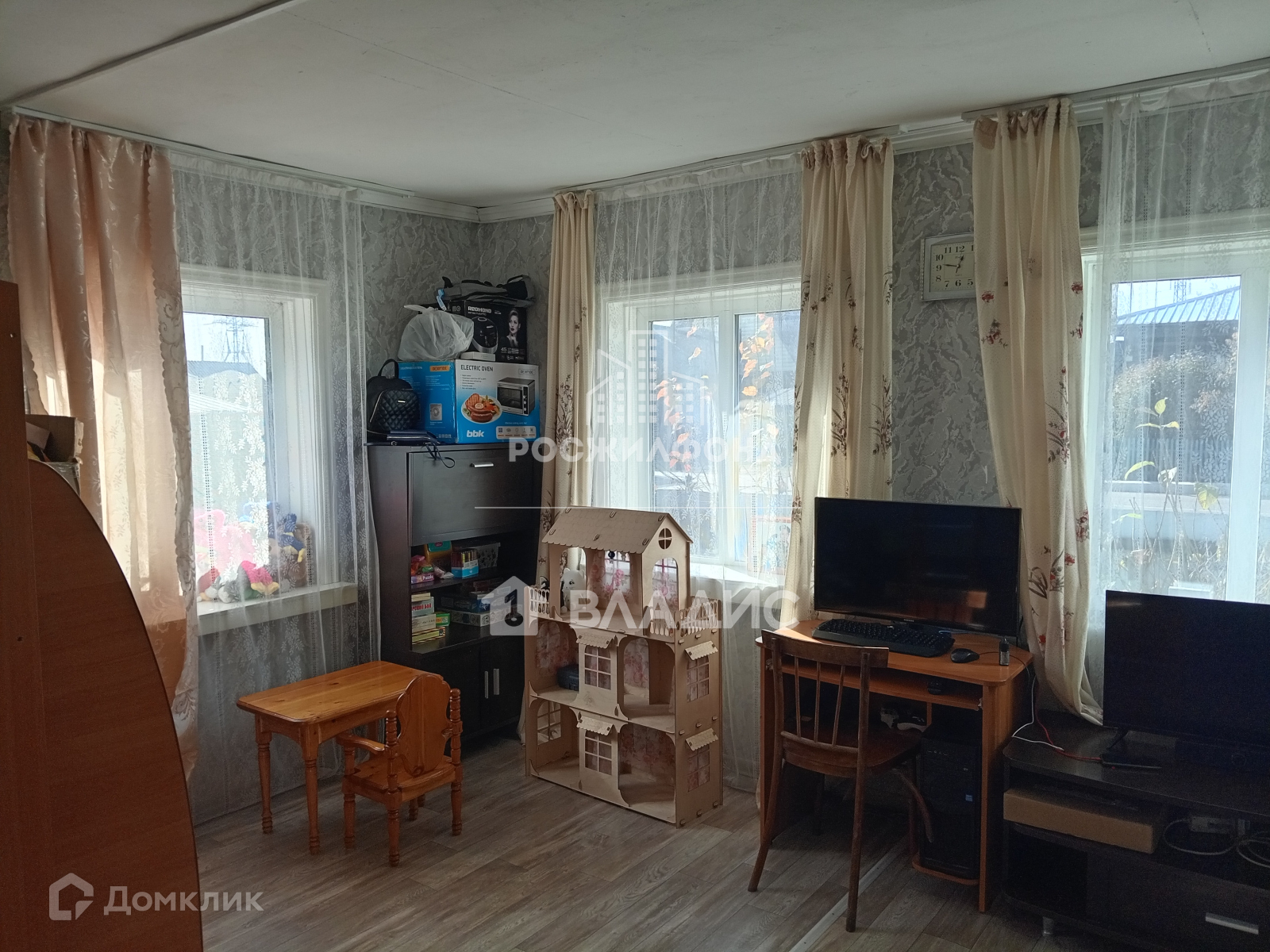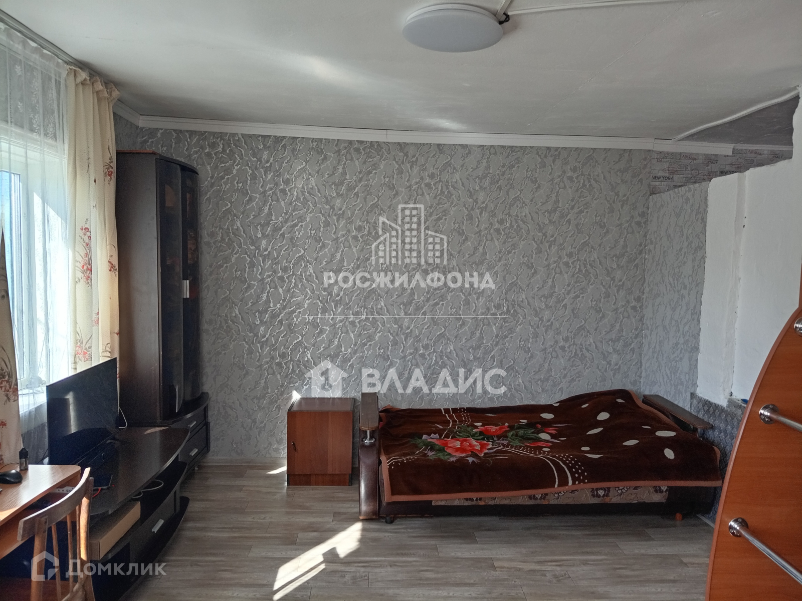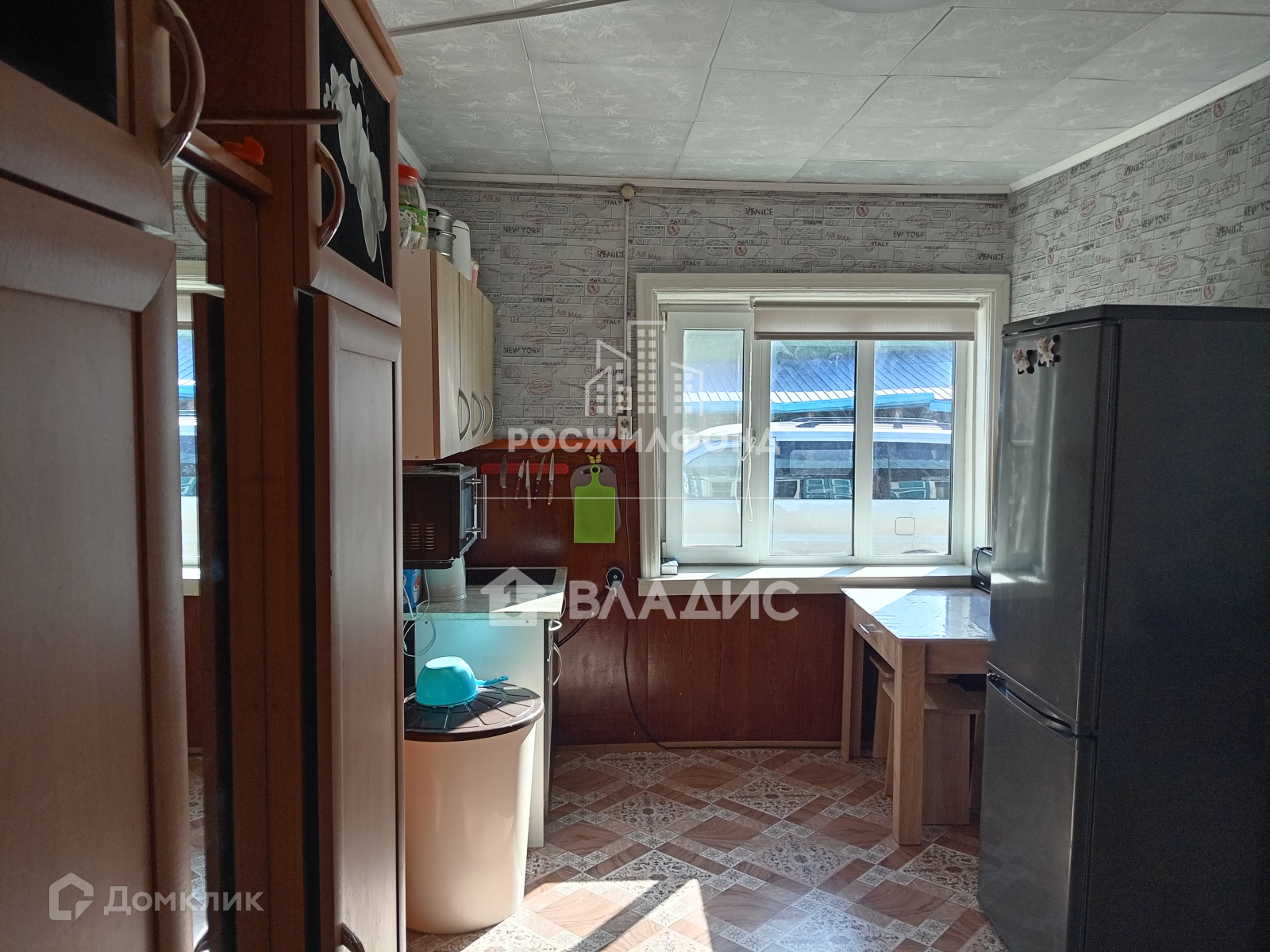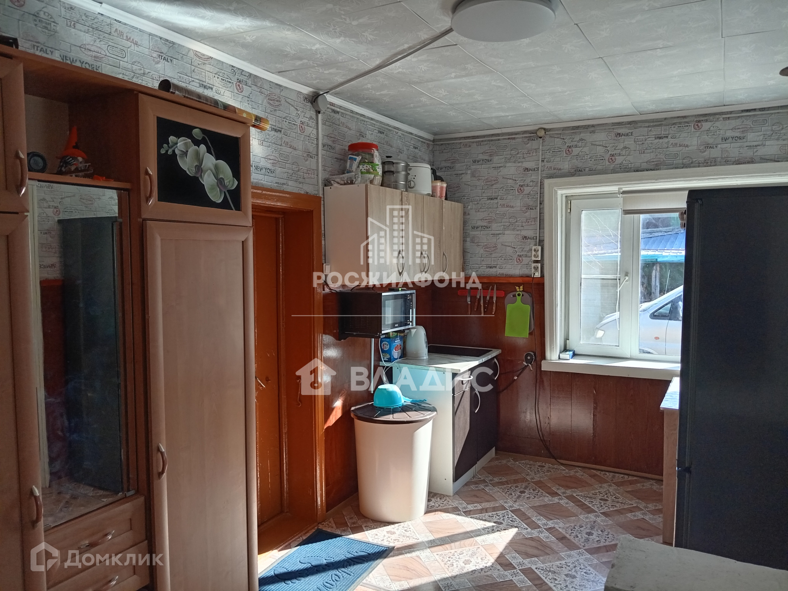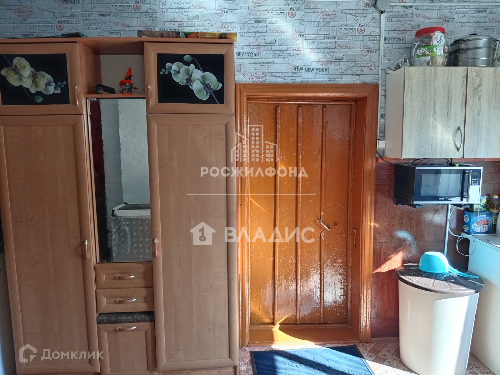- комната и кухня (потолки - побелка, полы - дощатые, линолеум, стены - обои);
