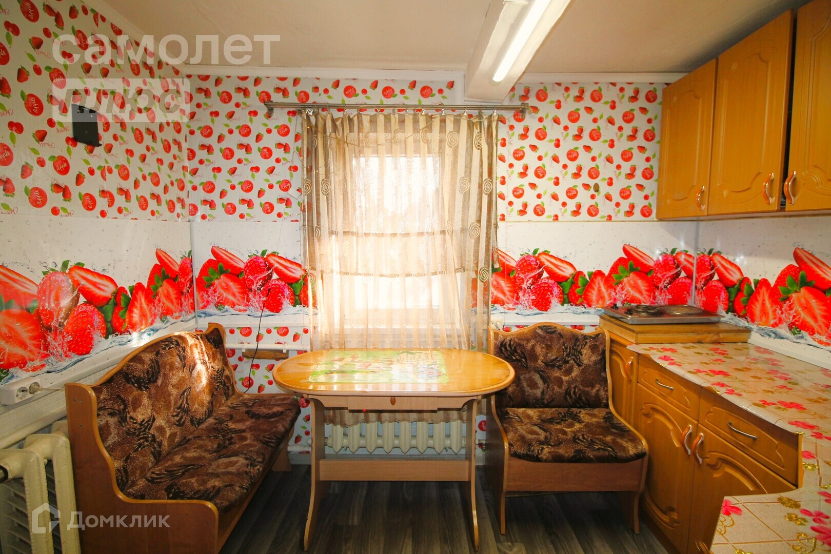 - На стенах аккуратные обои, постелен прочный линолеум