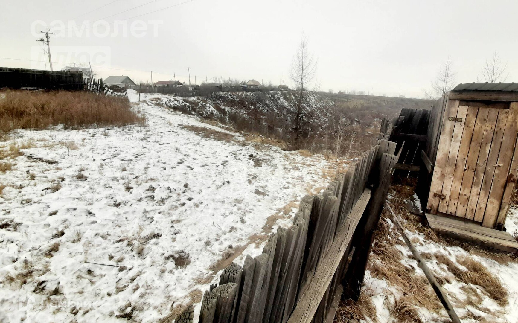 - Участок огорожен деревянным забором.