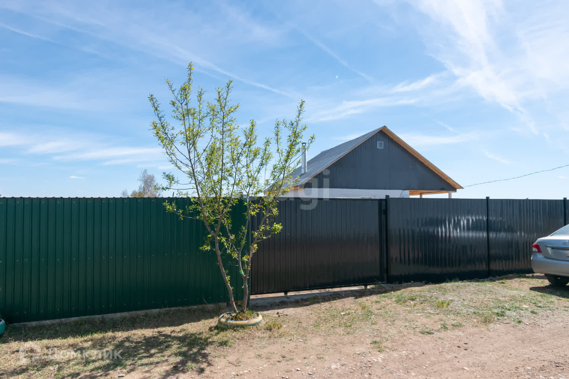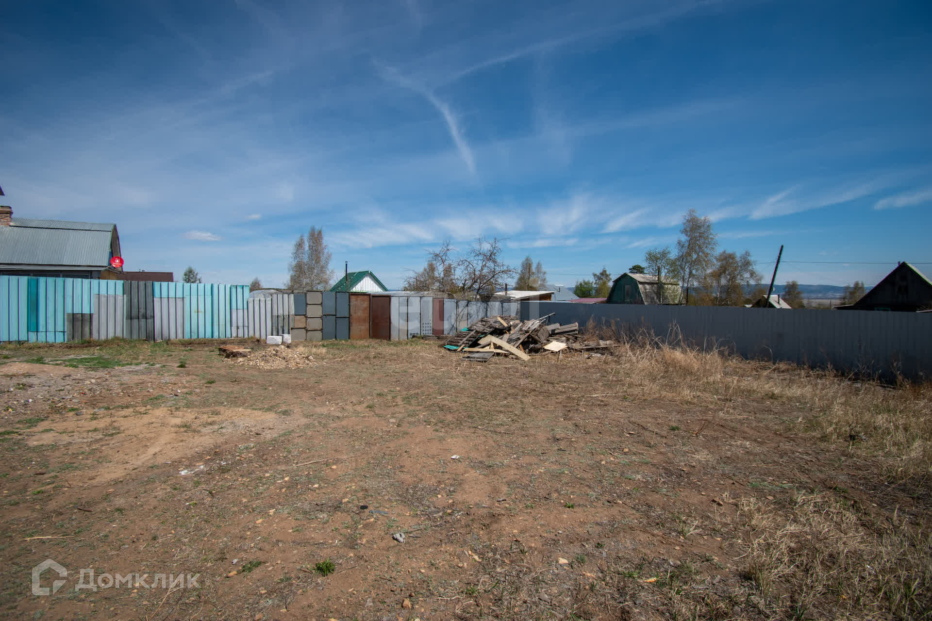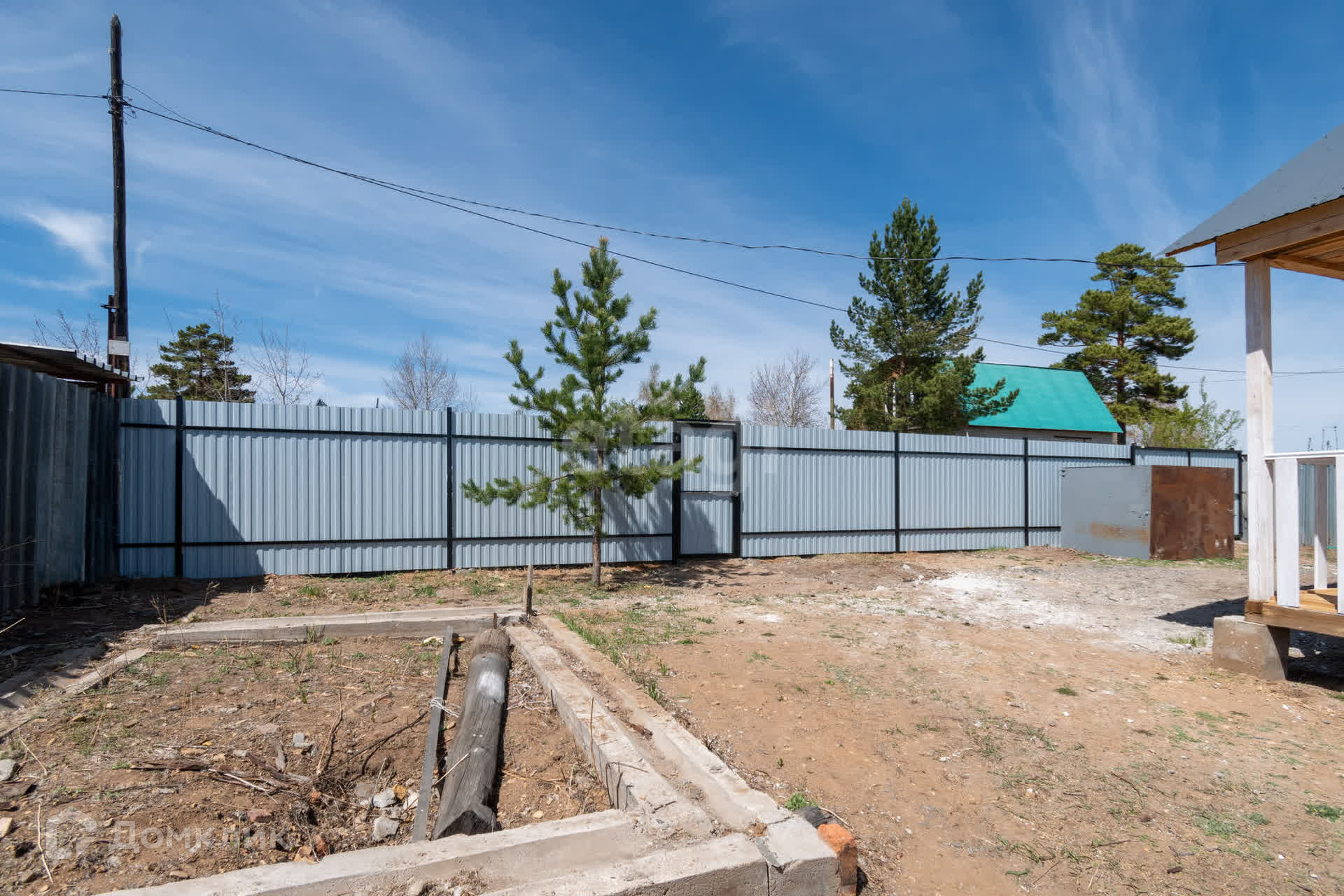 Участок 6 соток, лицевая сторона забора из профлиста с откатными воротами.