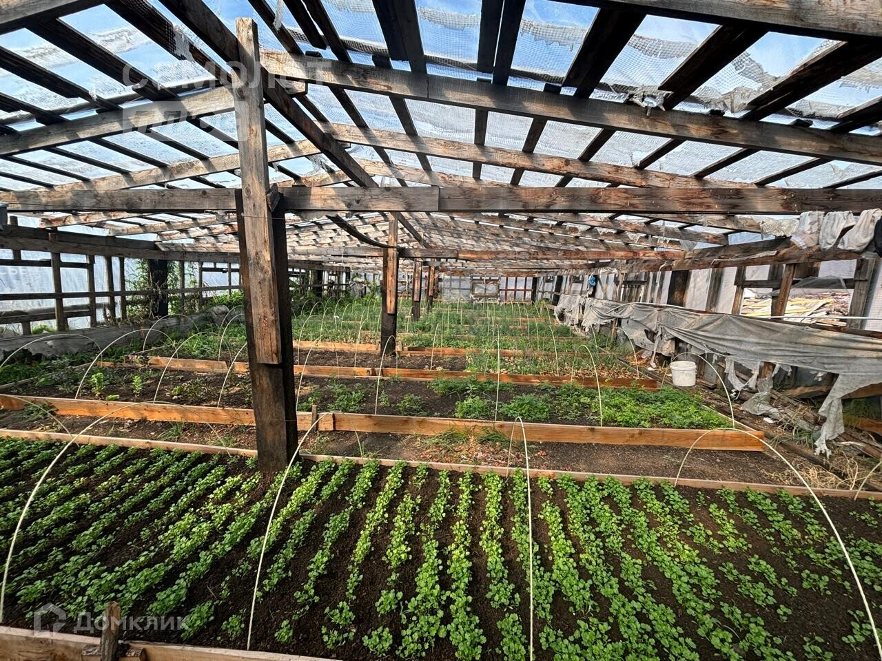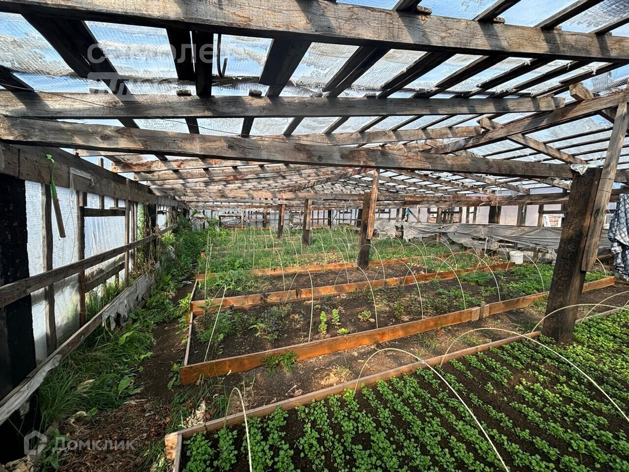 - На участке имеется гараж, дровник, большая теплица, насаждения.
