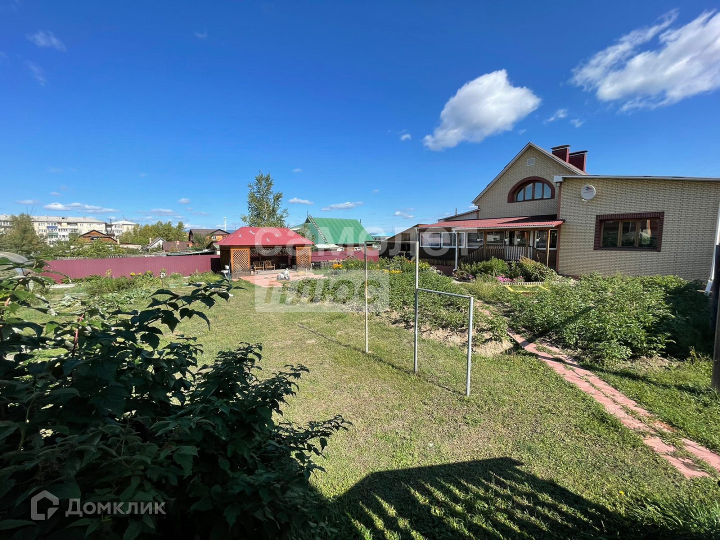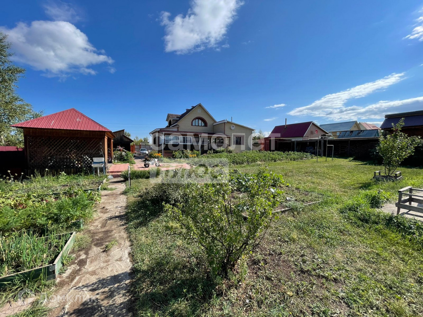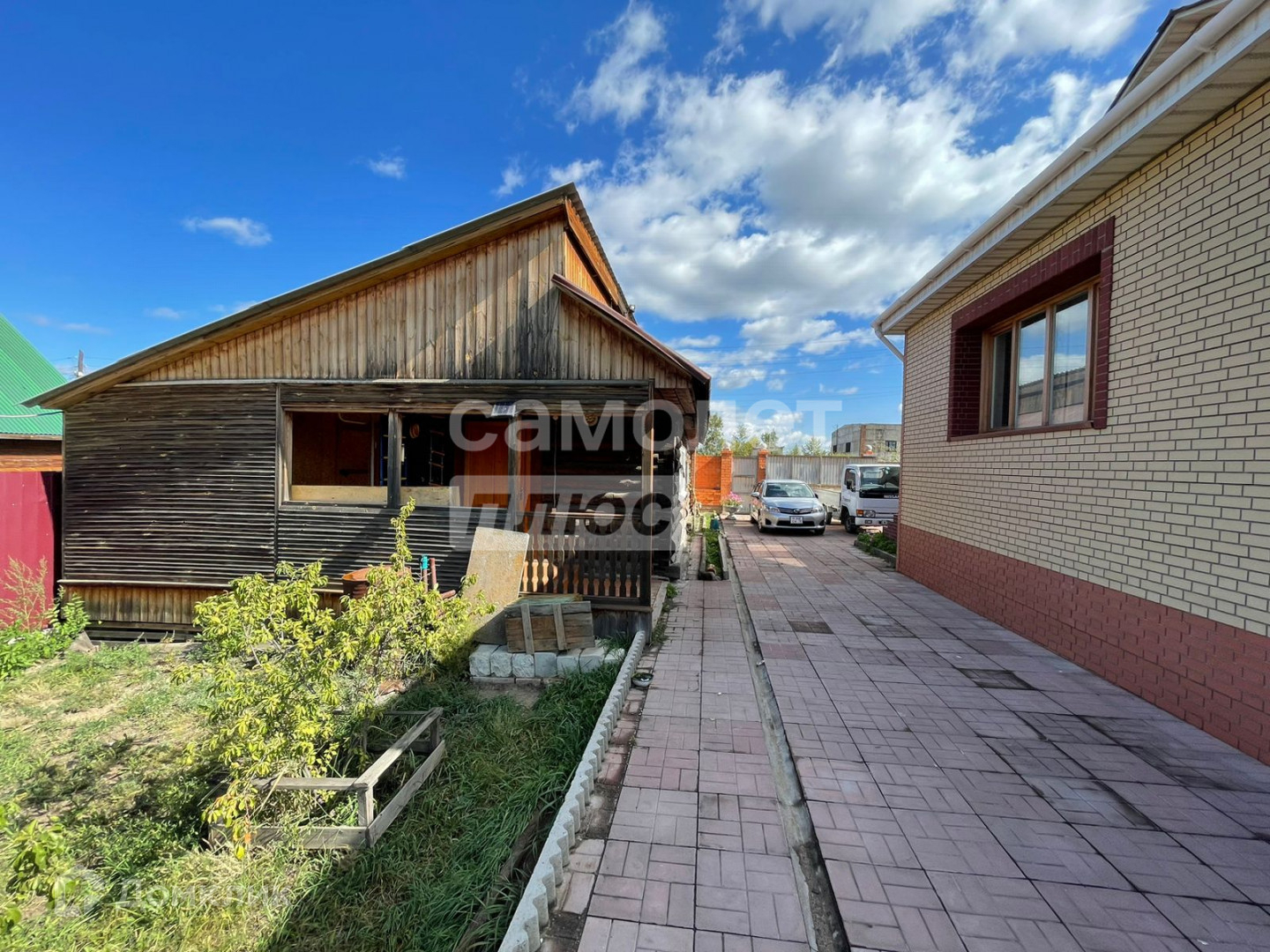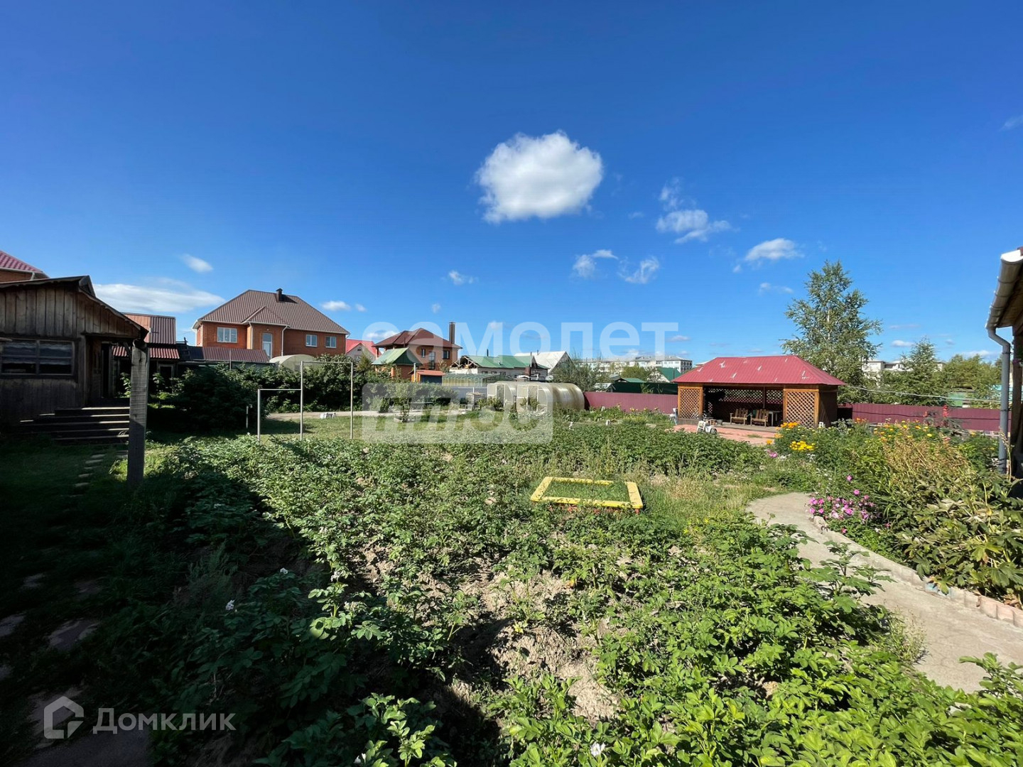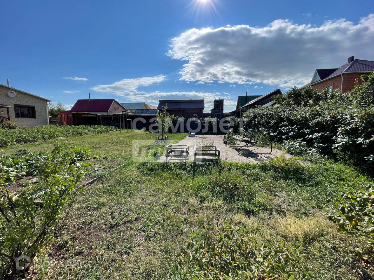 Участок 15 соток, на участке расположены баня, огород, два гаража (один под большую машину), утепленная летняя кухня.