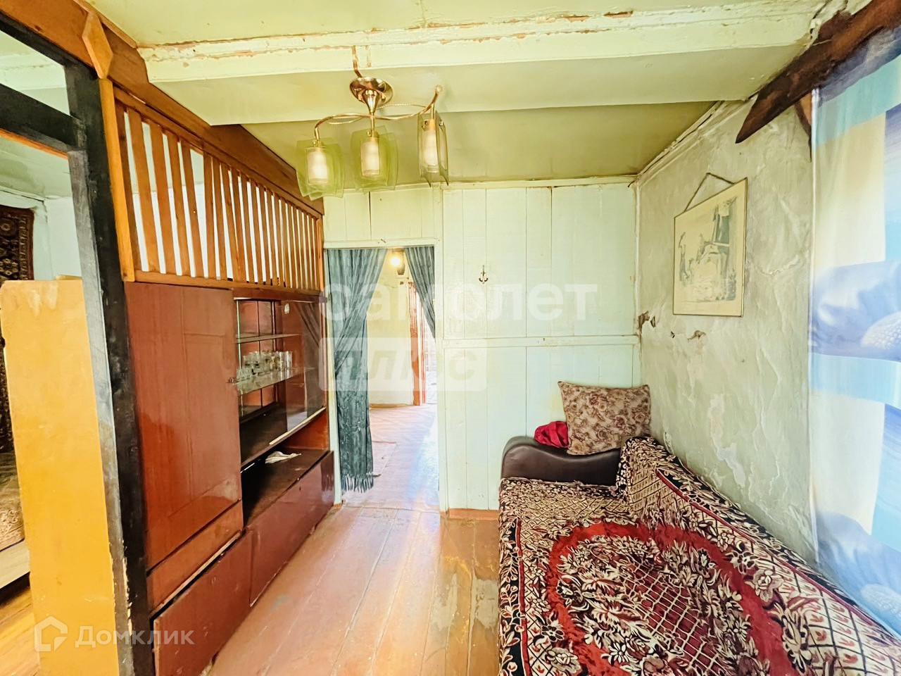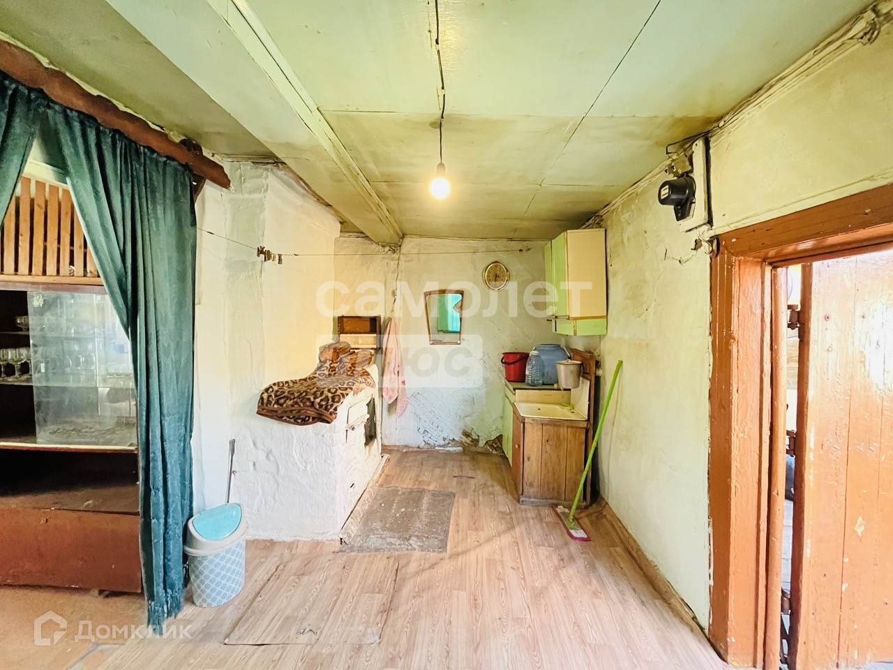 Косметический ремонт представляет собой побелённые стены и потолки, пол деревянный, на кухне покрыт линолеумом.