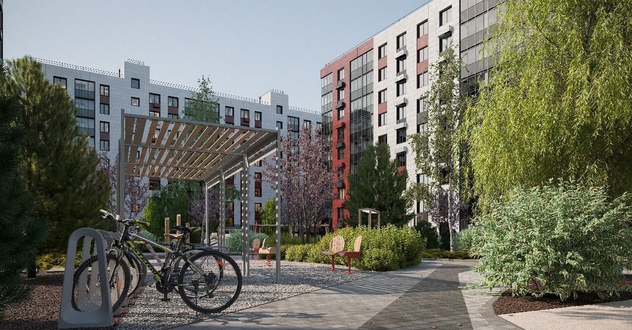 Вдоль всего комплекса расположена прогулочная аллея с велодорожками. Парковая зона, так же, как и вся территория микрорайона, будет озеленена декоративными растениями возрастом 7-12 лет из сибирских питомников. Продуманное парковое освещение сделает прогулки безопасными даже ночью.