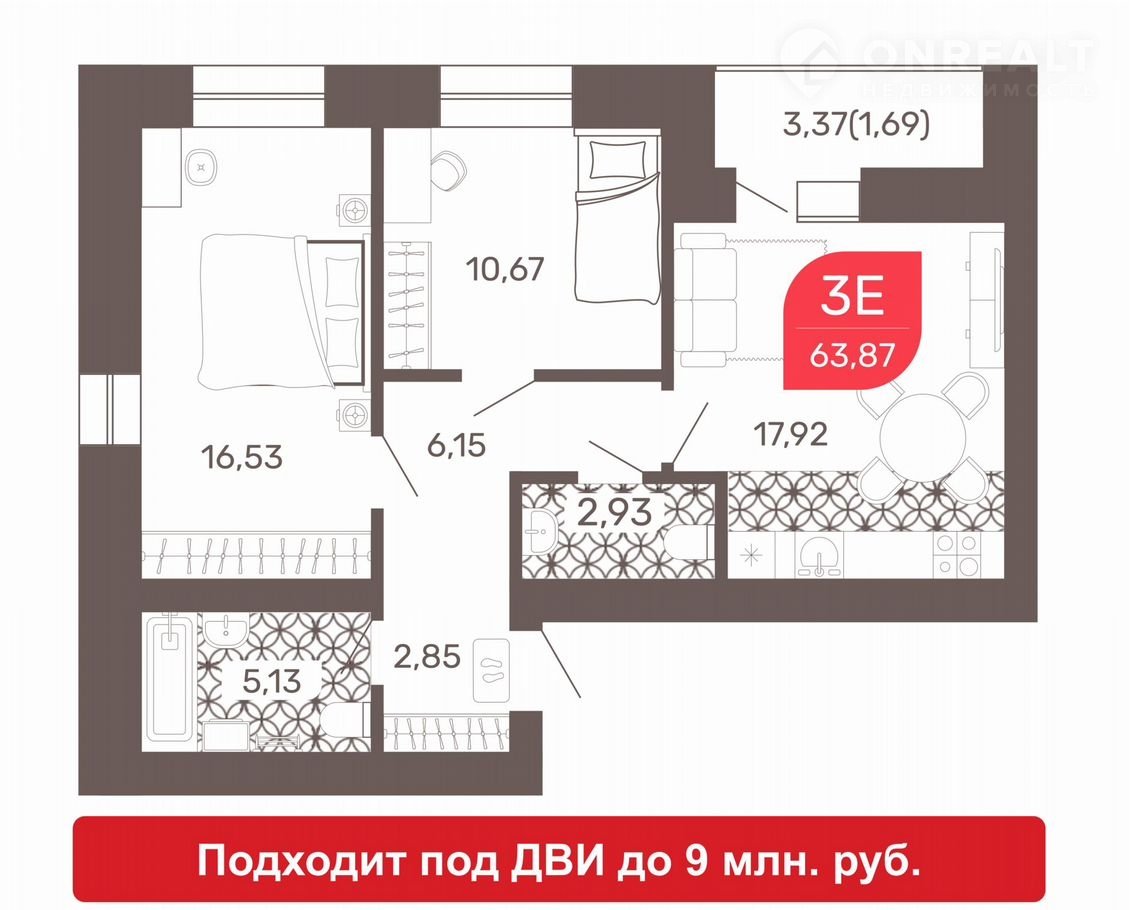 Общая площадь 63.9 м2