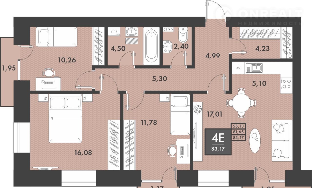 Общая площадь 83.2 м2