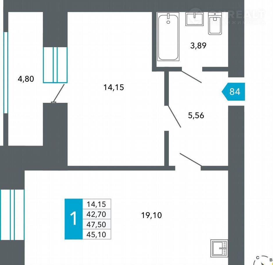 1-комнатная квартира, 45.1 м2, этаж 6 / 9, на продажу в Чите, Нерчинско-Заводская улица, 6/8