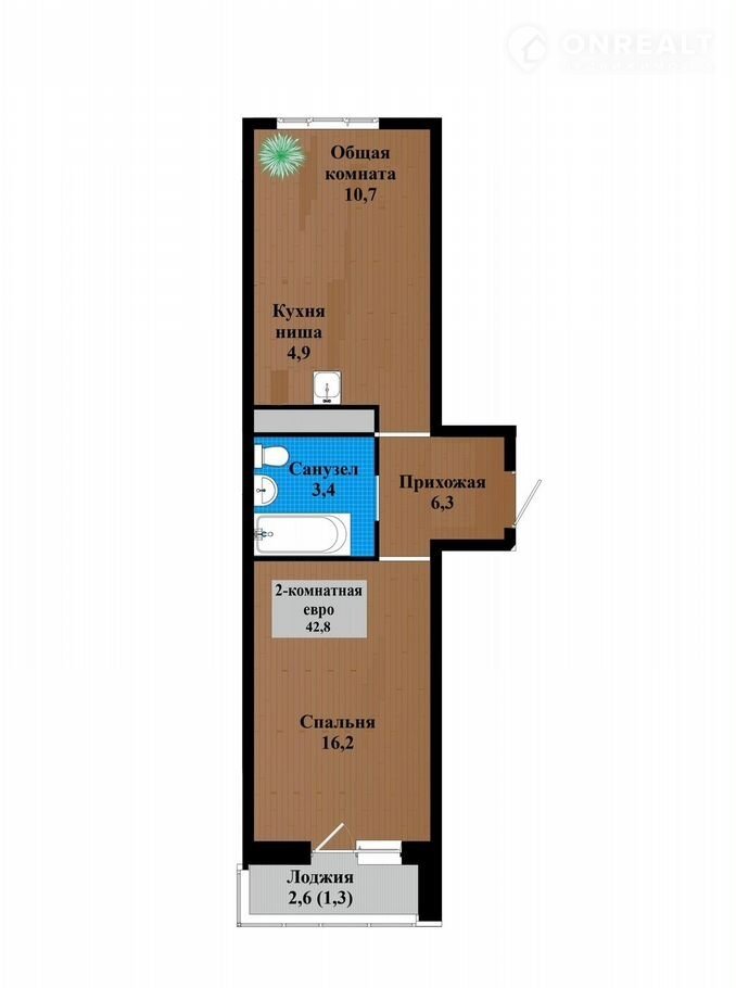 Общая площадь 42.8 м2