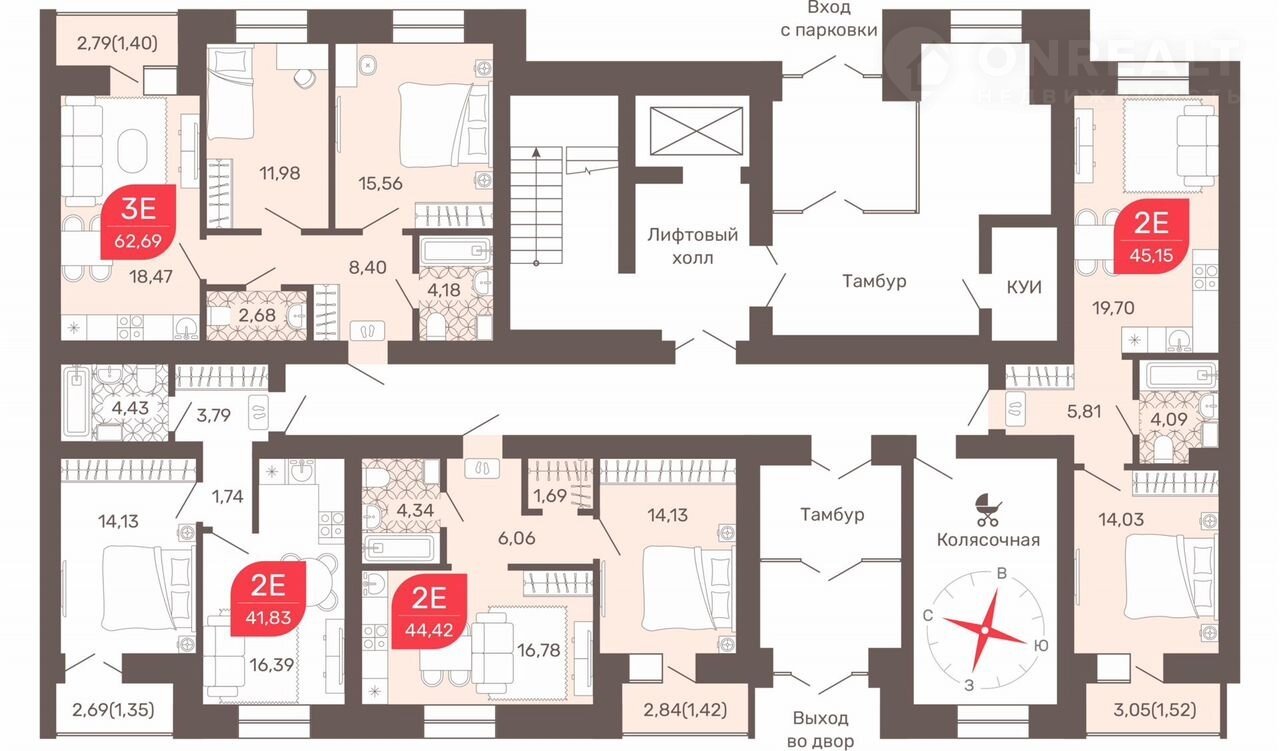 Общая площадь 42.9 м2