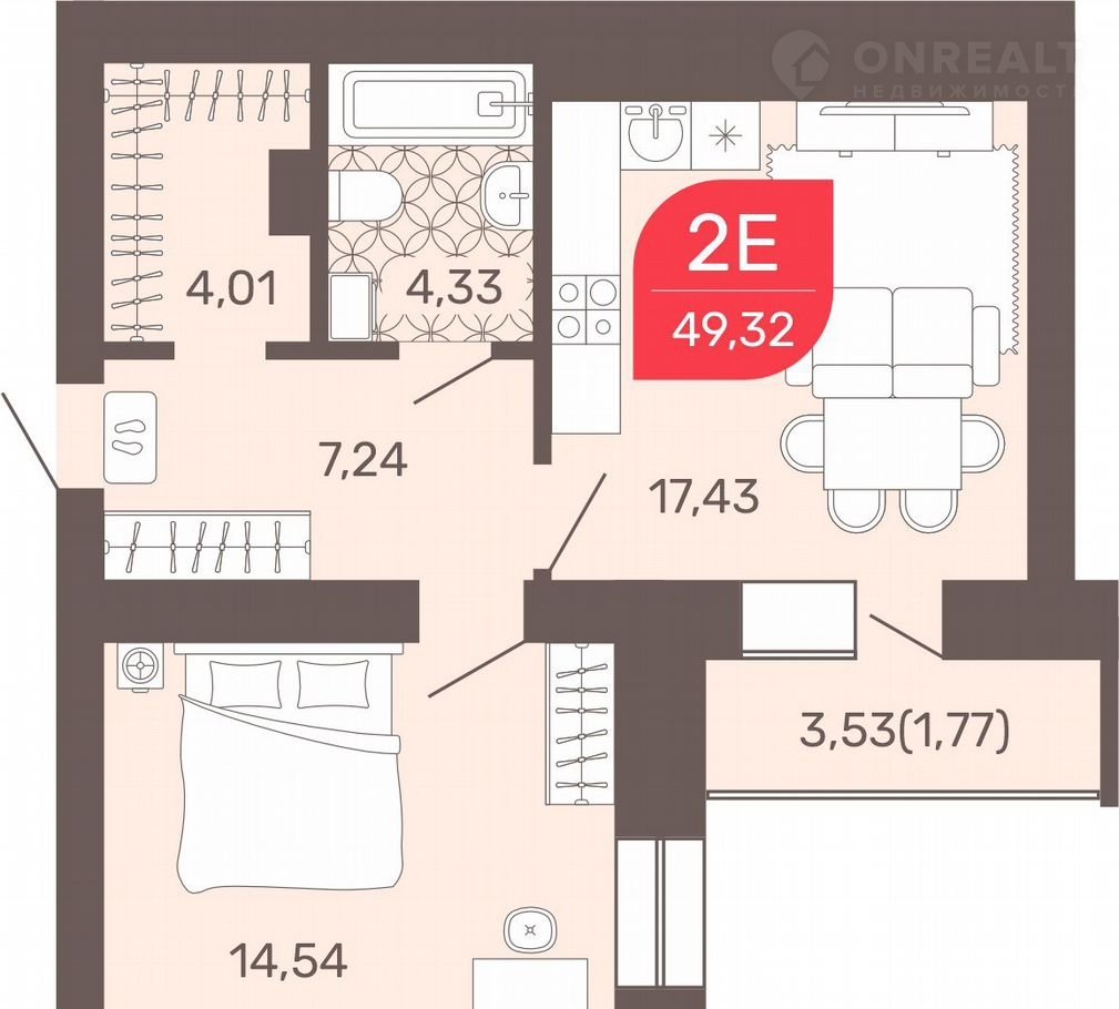Общая площадь 49.2 м2