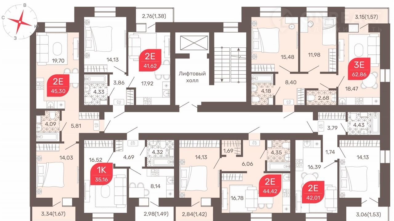 Общая площадь 44.6 м2