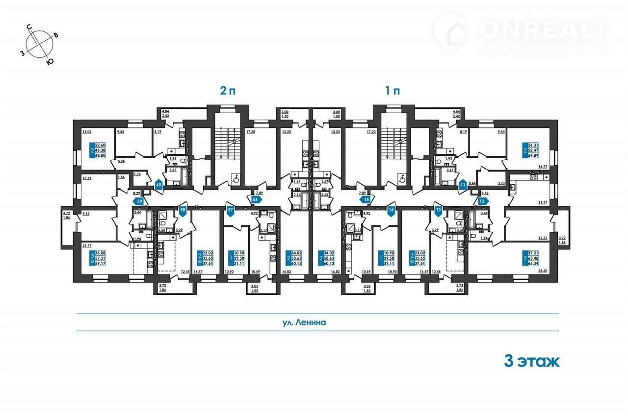Общая площадь 54.9 м2