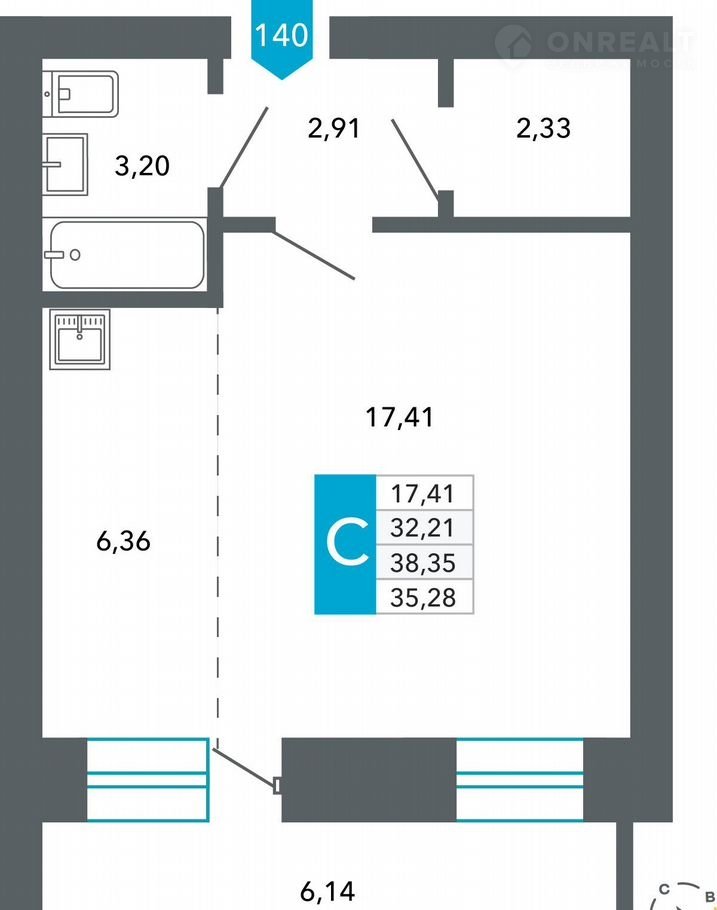 Общая площадь 35.3 м2