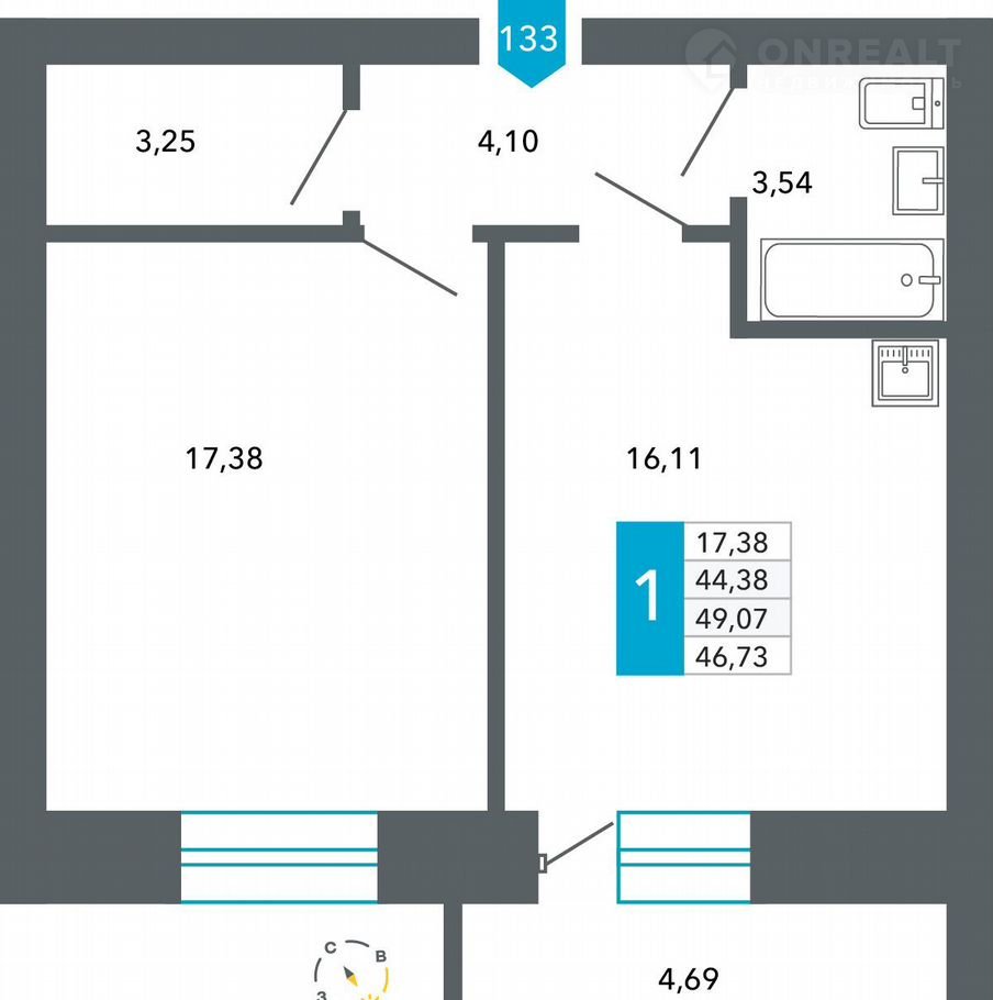 Количество комнат 1