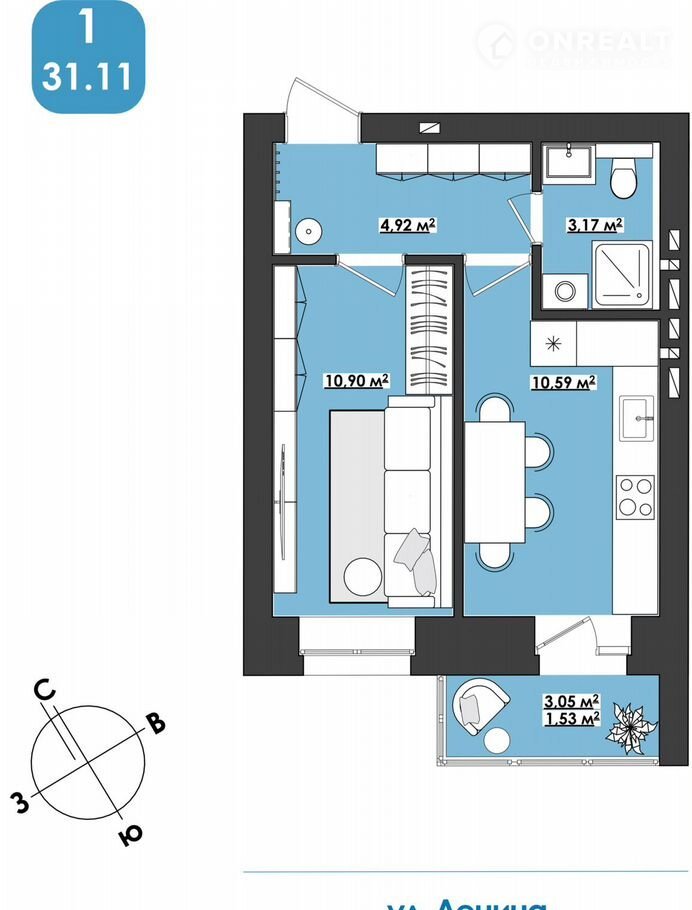 Общая площадь 31.1 м2