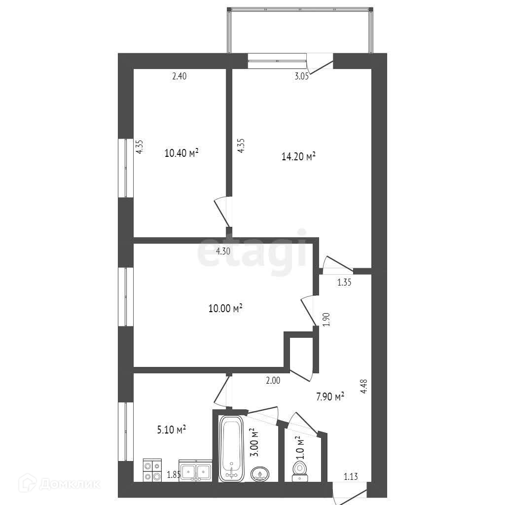 Общая площадь 50.8 м2