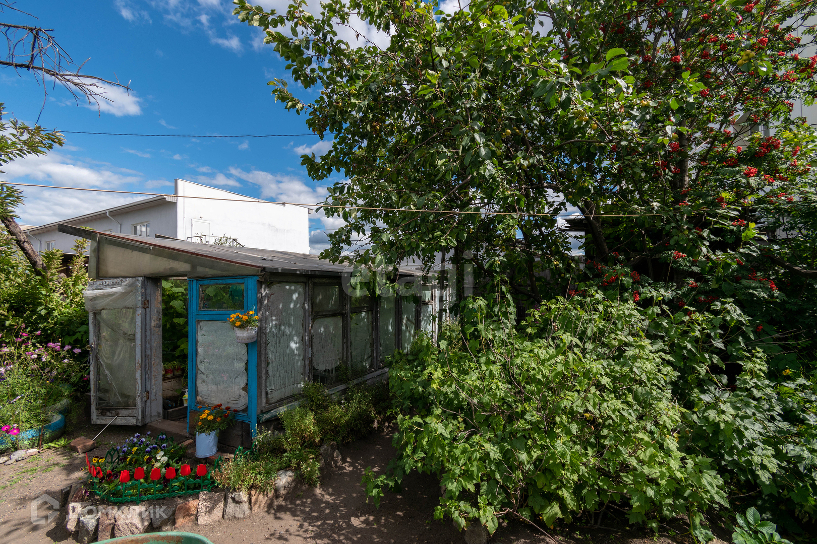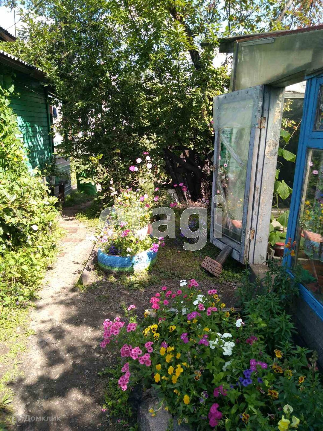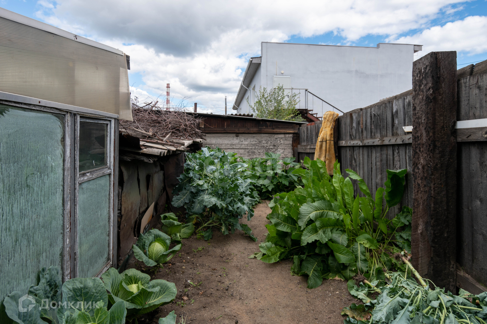 Огород 5 соток, на участке имеется теплица, насаждения:смородина, ранетка,черемуха, рябина. В ограде 2 гаража, баня, тепляк для животных.