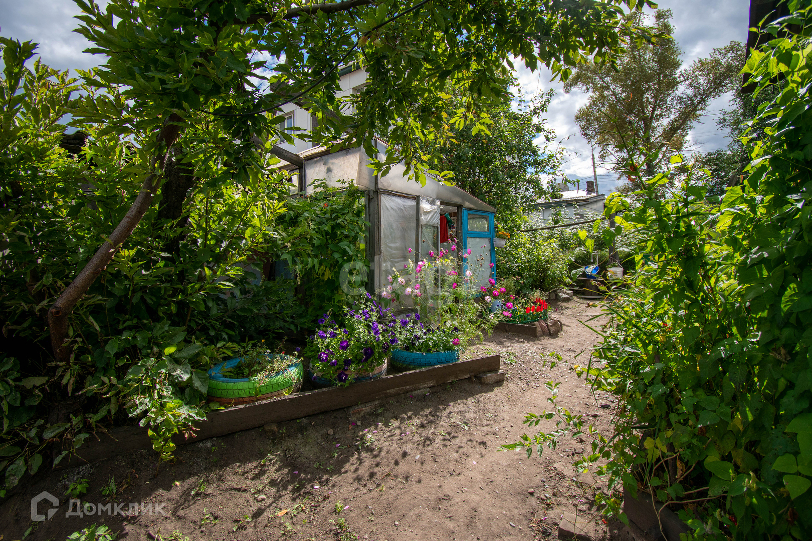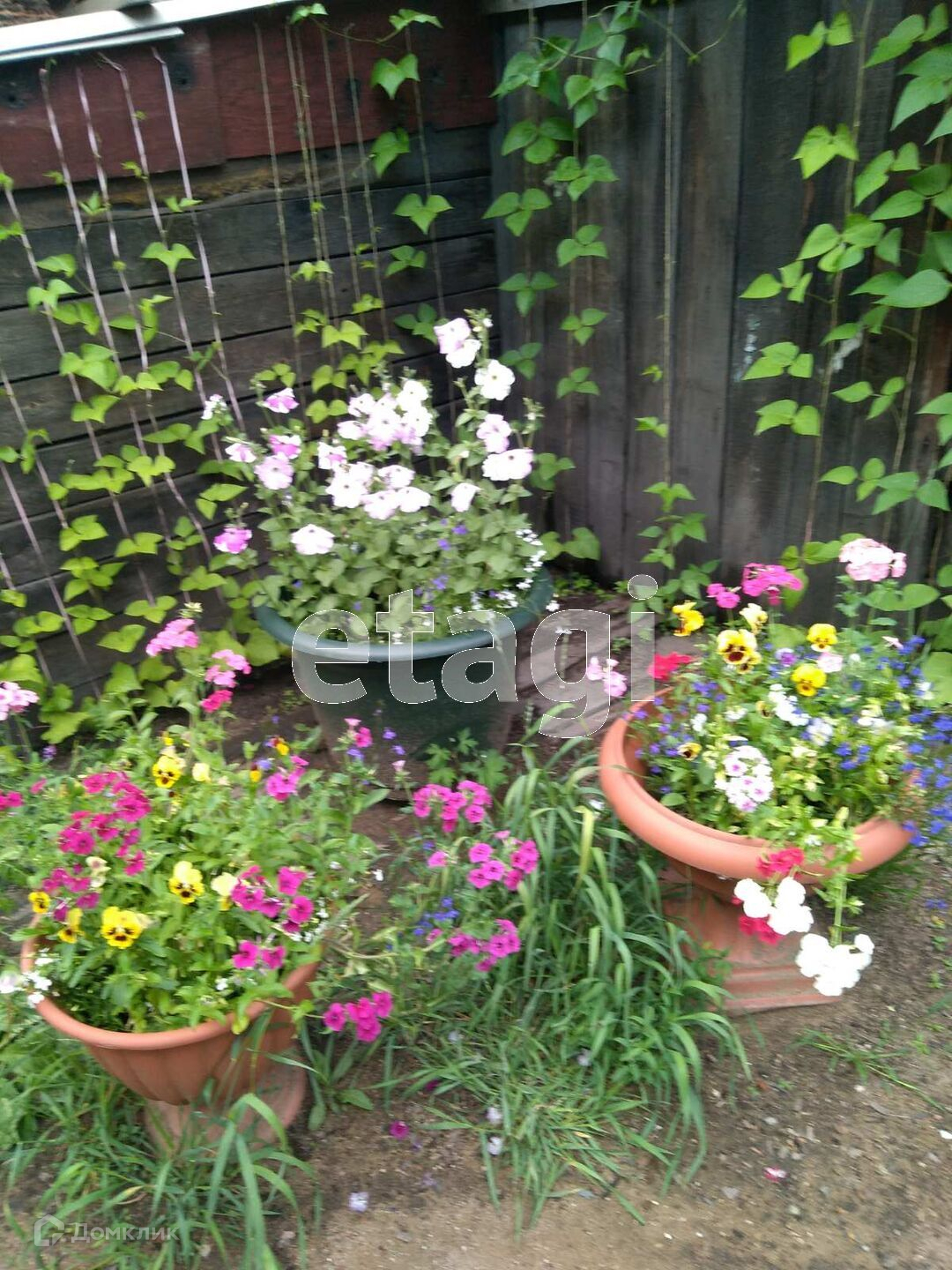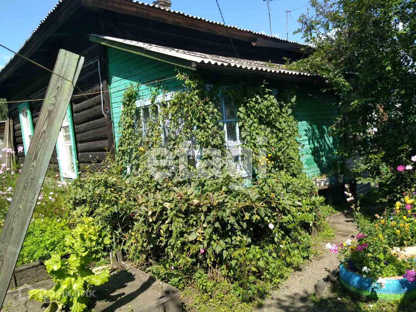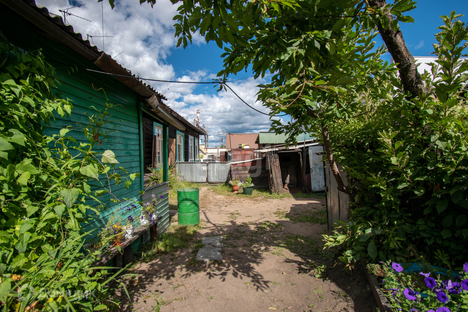 Огород 5 соток, на участке имеется теплица, насаждения:смородина, ранетка,черемуха, рябина. В ограде 2 гаража, баня, тепляк для животных.