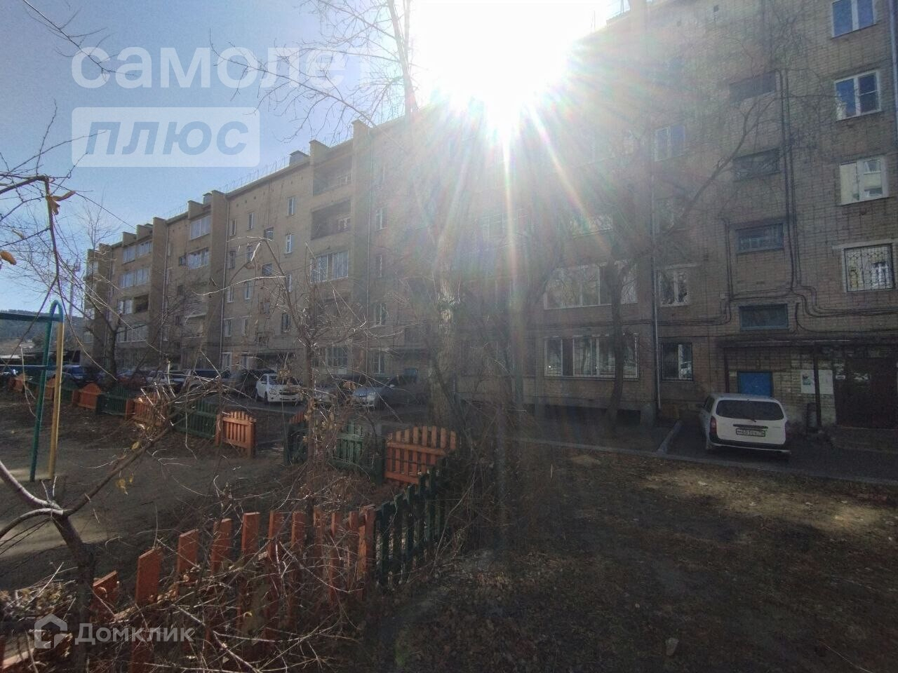 -окна выходят во двор, дети и машина под присмотром