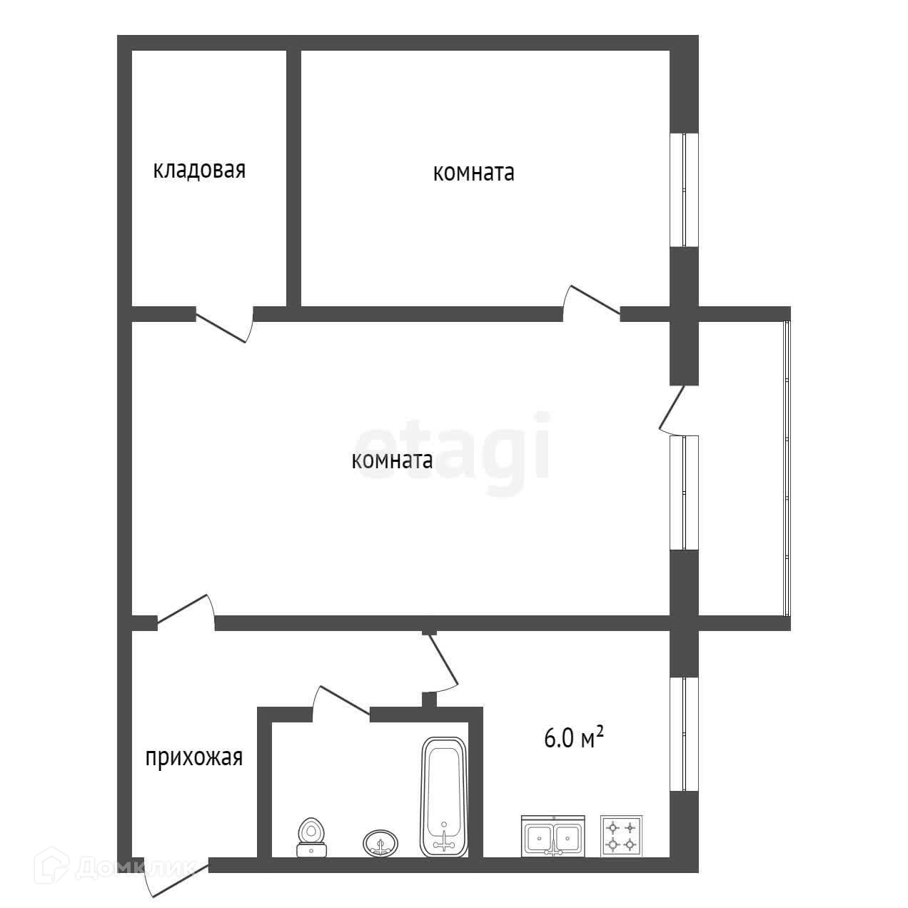 Площадь кухни 6 м2