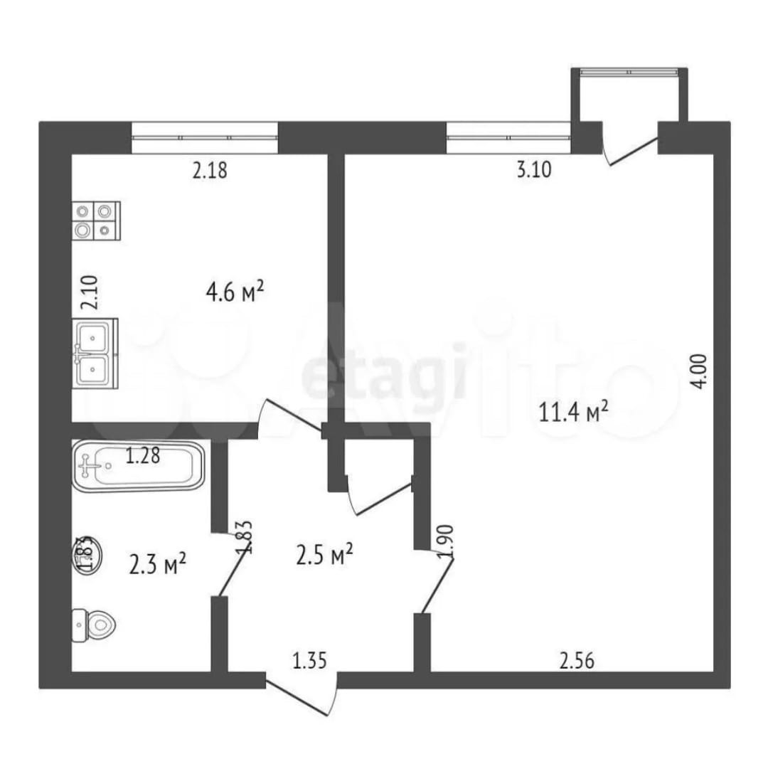 Площадь кухни 4.6 м2