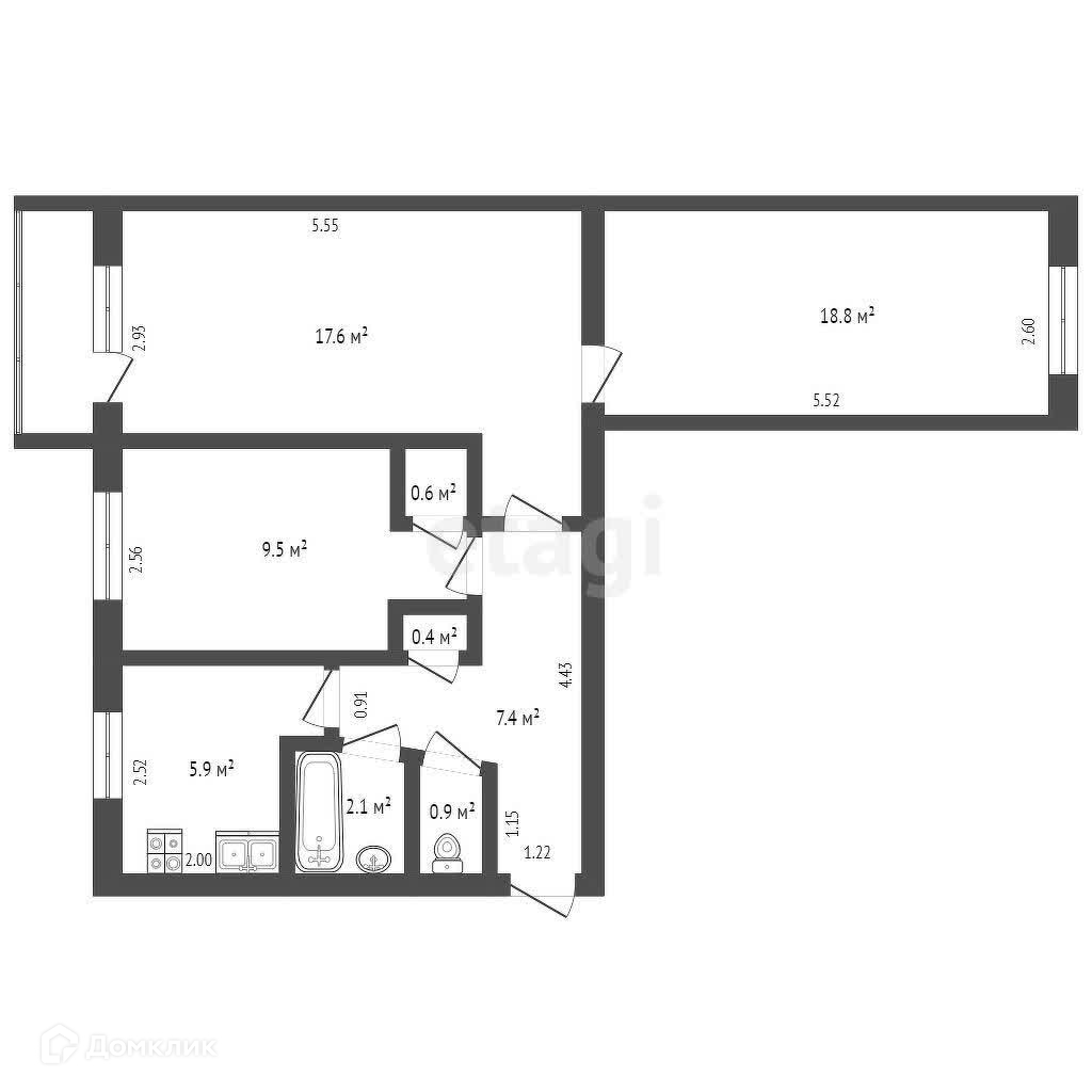 Общая площадь 58.8 м2