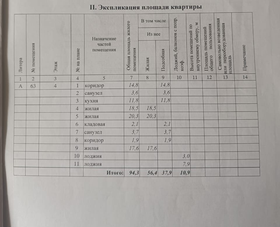 Общая площадь 94.3 м2