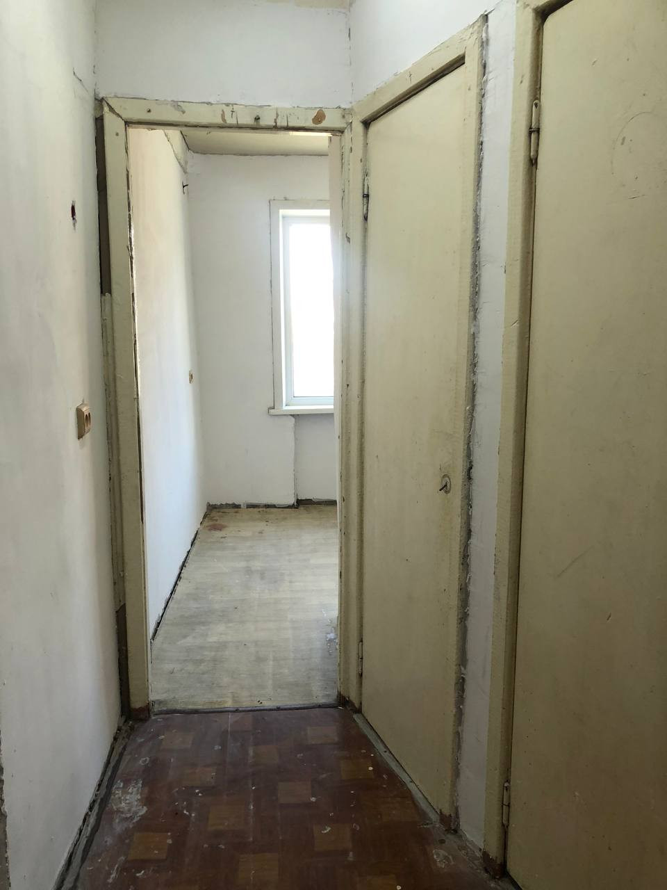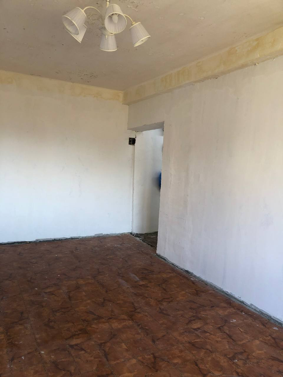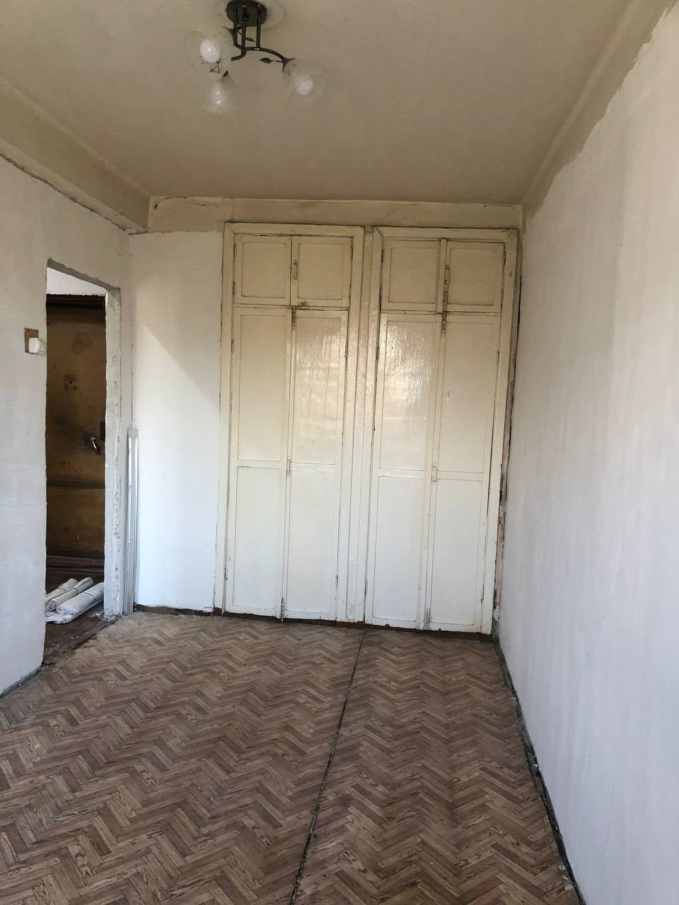 В квартире отштукатурены стены и подготовлены под оклейку обоев.