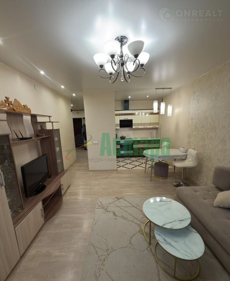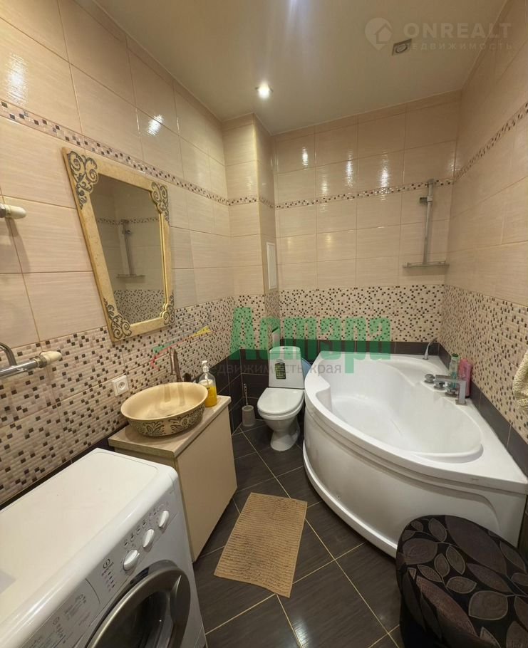 Ремонт выполнен из качественных материалов: натяжные потолки, ламинат, плитка на кухне и в санузле. В квартире много дополнительного освещения, установлена большая ванная в форме джакузи.