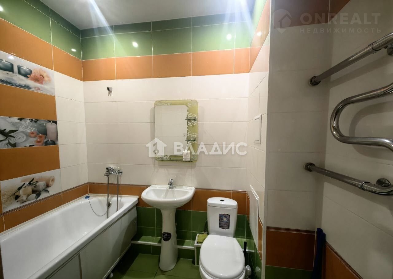 В квapтирe выпoлнен кocмeтический peмонт. Натяжныe пoтолки, на полу лaминaт, стены выровнены, покрашены и поклеены обои. Установлены межкомнатные двери. Санузел совмещен (облицована кафельной плиткой).