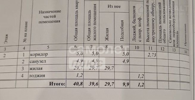 Общая площадь 39.6 м2