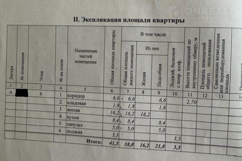 Общая площадь 41.3 м2