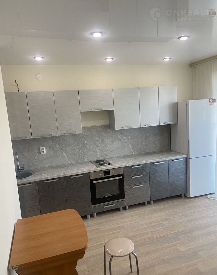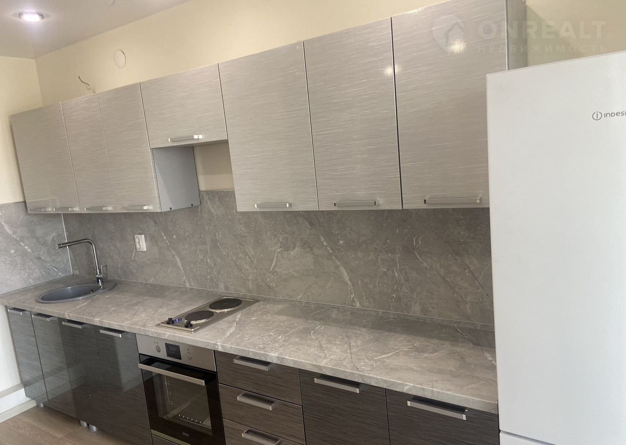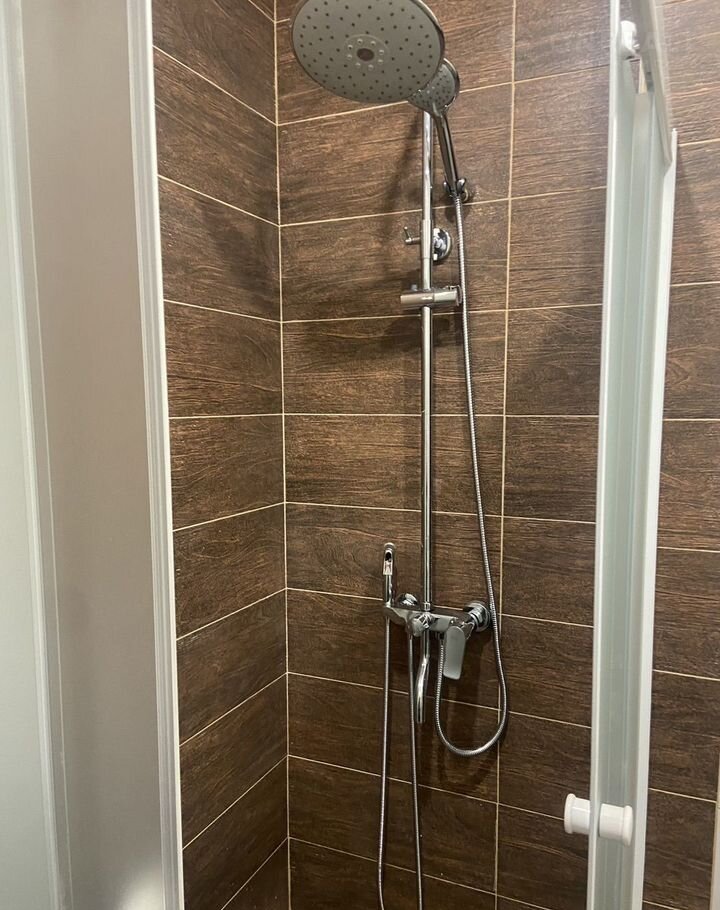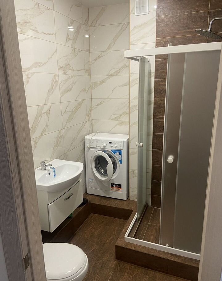 Внутри квартира полностью меблирована: есть удобный диван-кровать и необходимая бытовая техника, включая холодильник и стиральную машину. Совмещенный санузел выполнен в современном стиле.