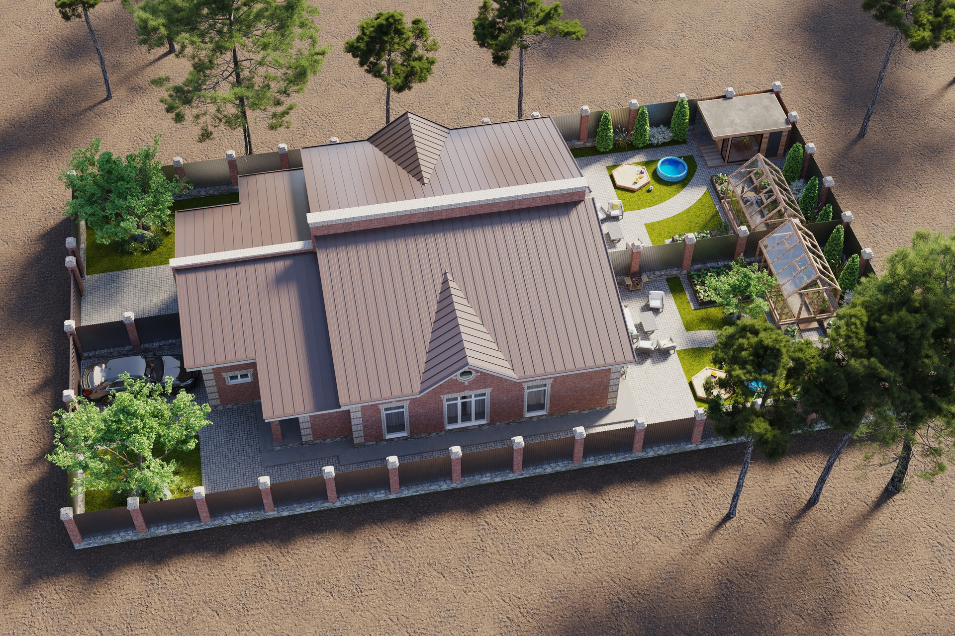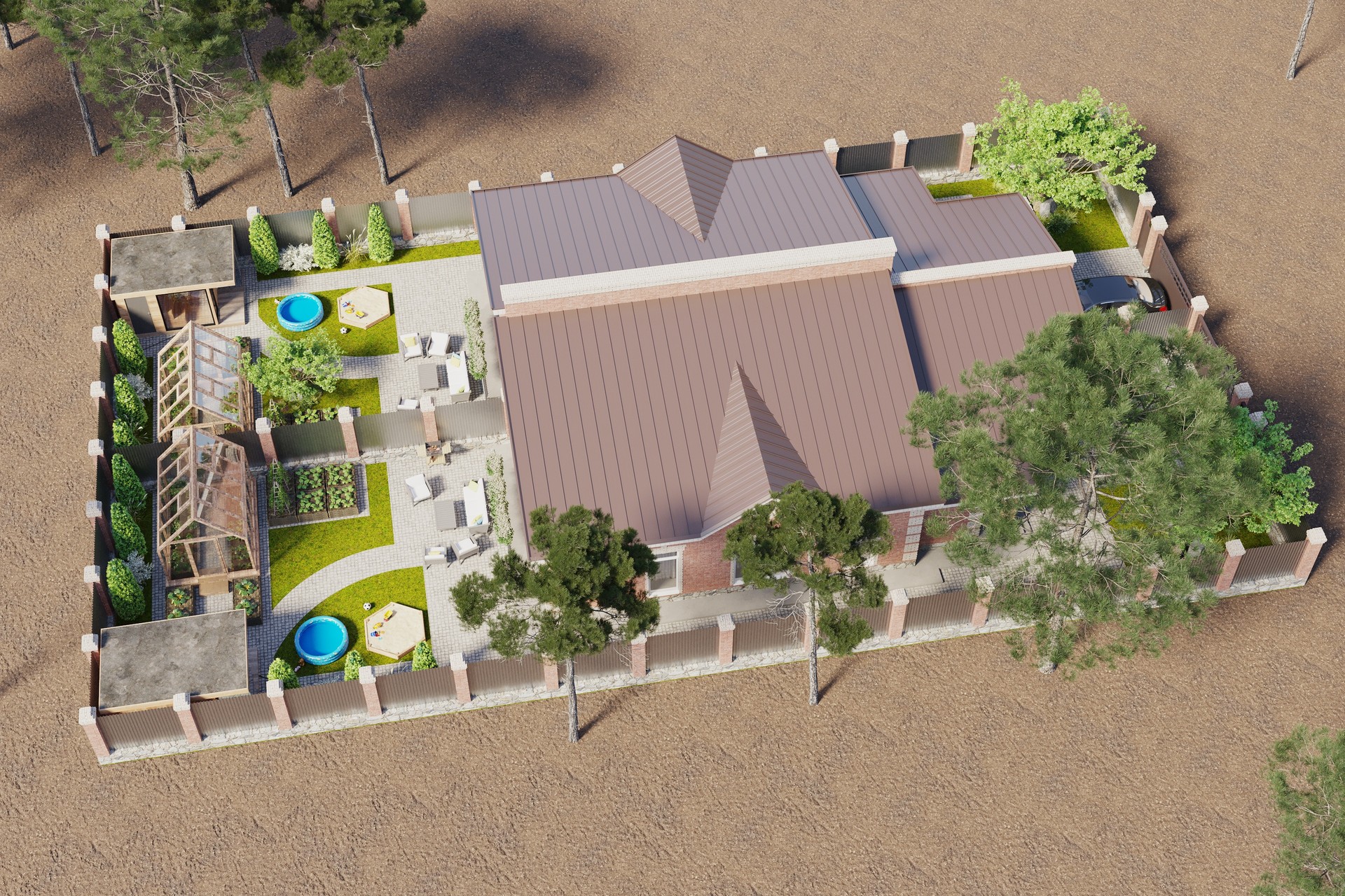 На зем.участке можно разместить баньку и тепличку, зону для отдыха и детский уголок и еще остается место под грядочки.