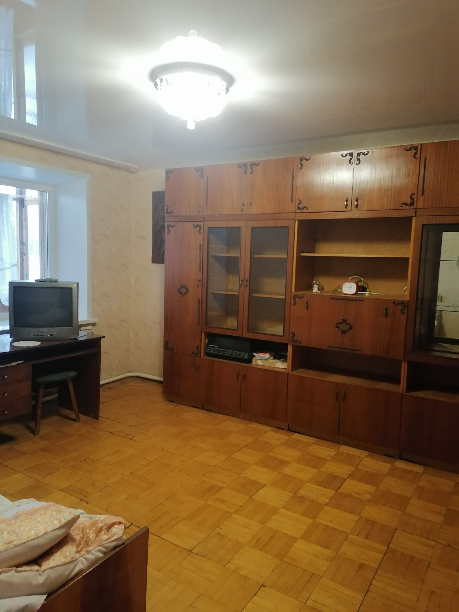Застекленный балкон, стеклопакеты во всех комнатах, сан. узел раздельный, квартира очень тёплая. Встроенная кухня, газ, центральное отопление, частично мебелированная.