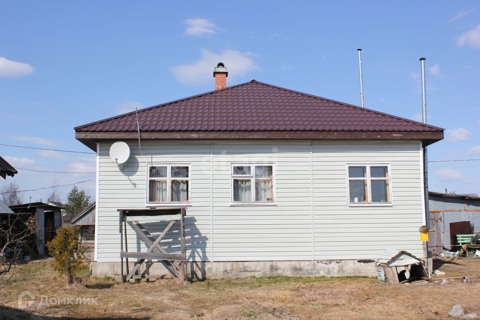 На участке расположена баня, просторная мастерская, в которой можно сделать гараж и еще останется рабочее место.
