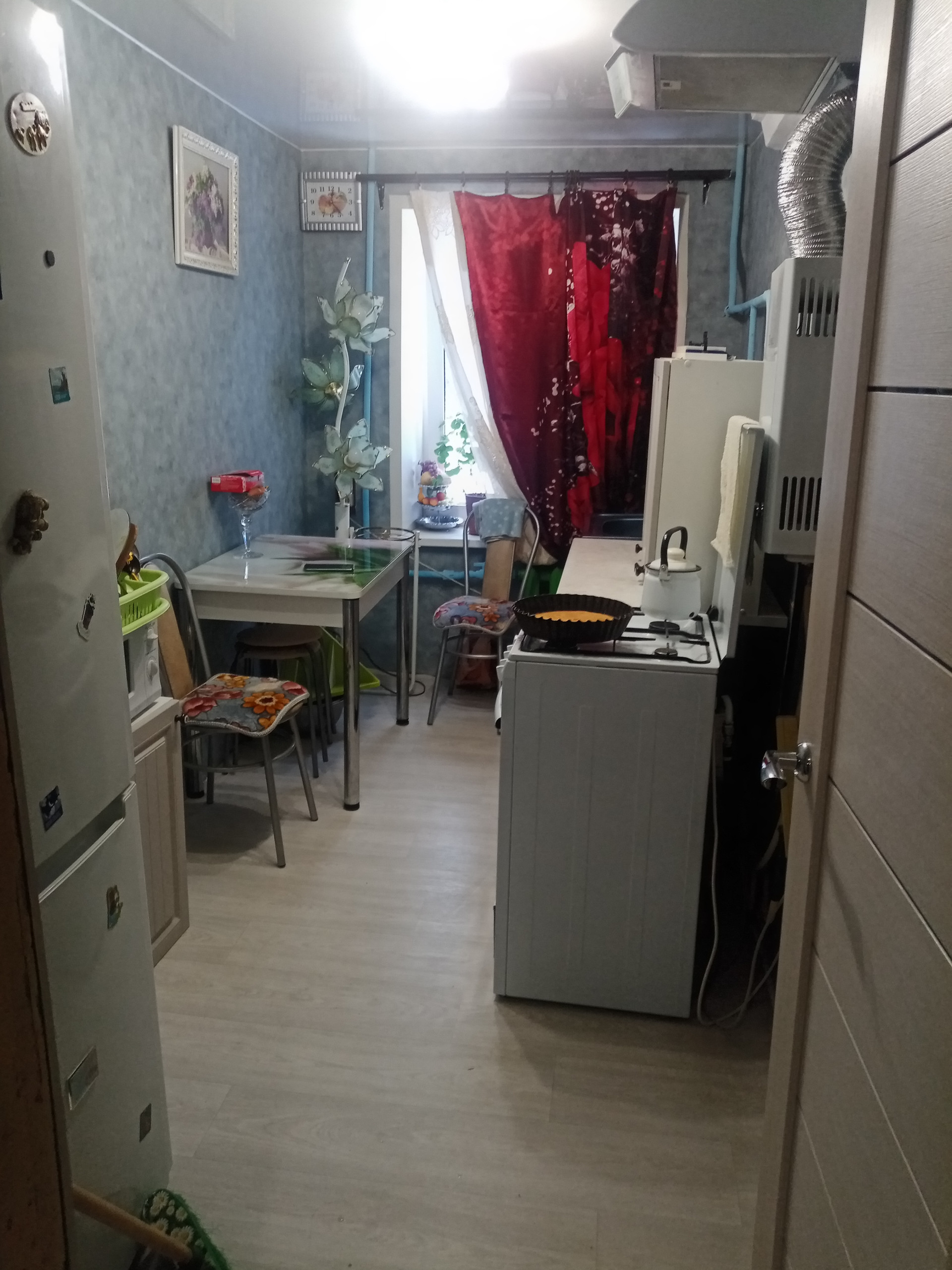 В квартире поменяны стеклопакеты, установлены новые межкомнатные двери, по всей квартире заменен новый ламинат, современная газовая колонка, новая раковина, ванна, новая металлическая дверь.