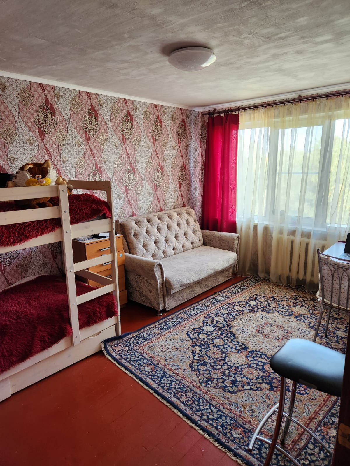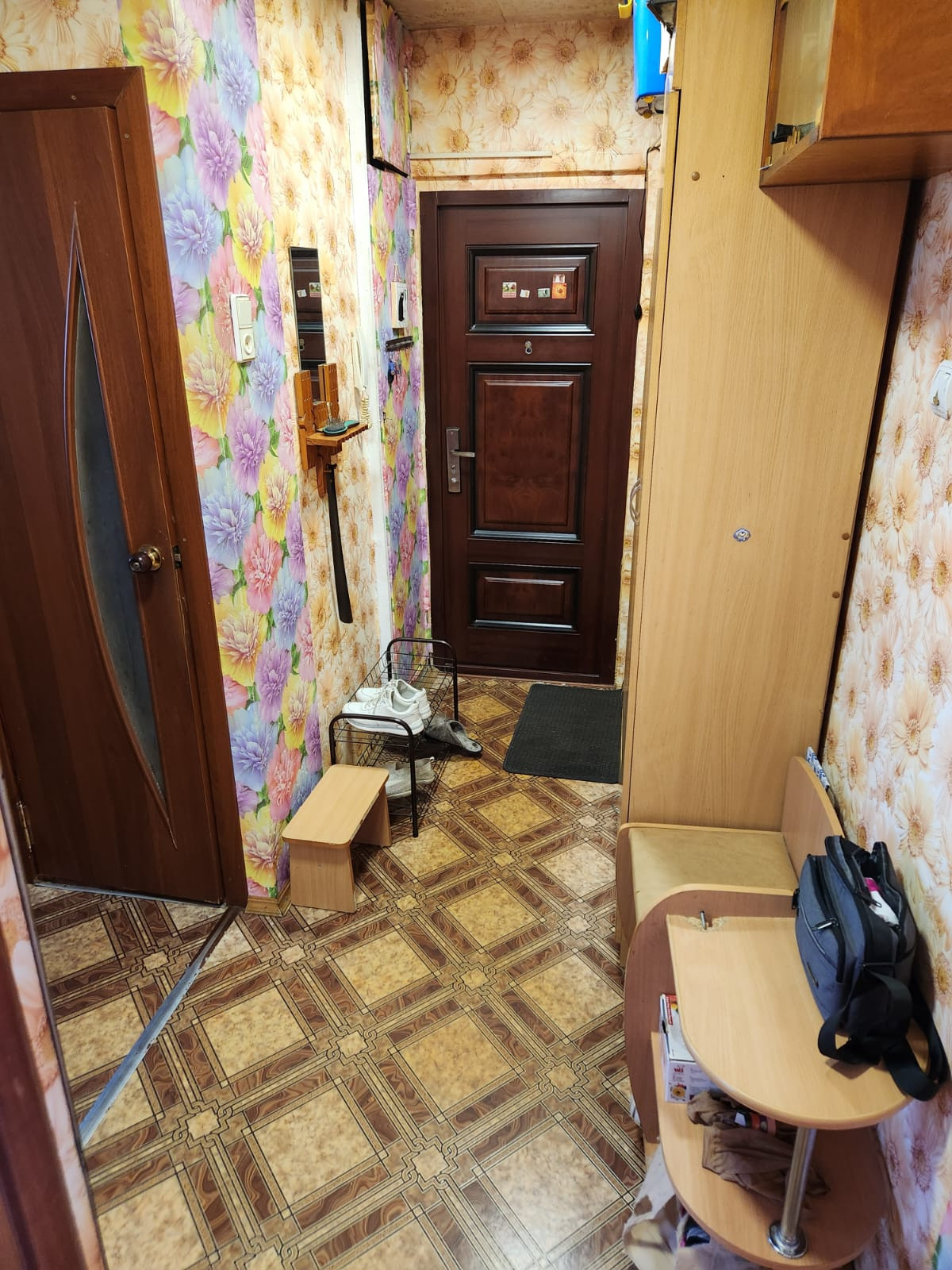 Полы -комнаты-деревянные, кухня, прихожая- линолеум.