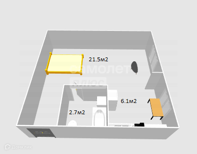 Площадь - 30,3 кв.м.
