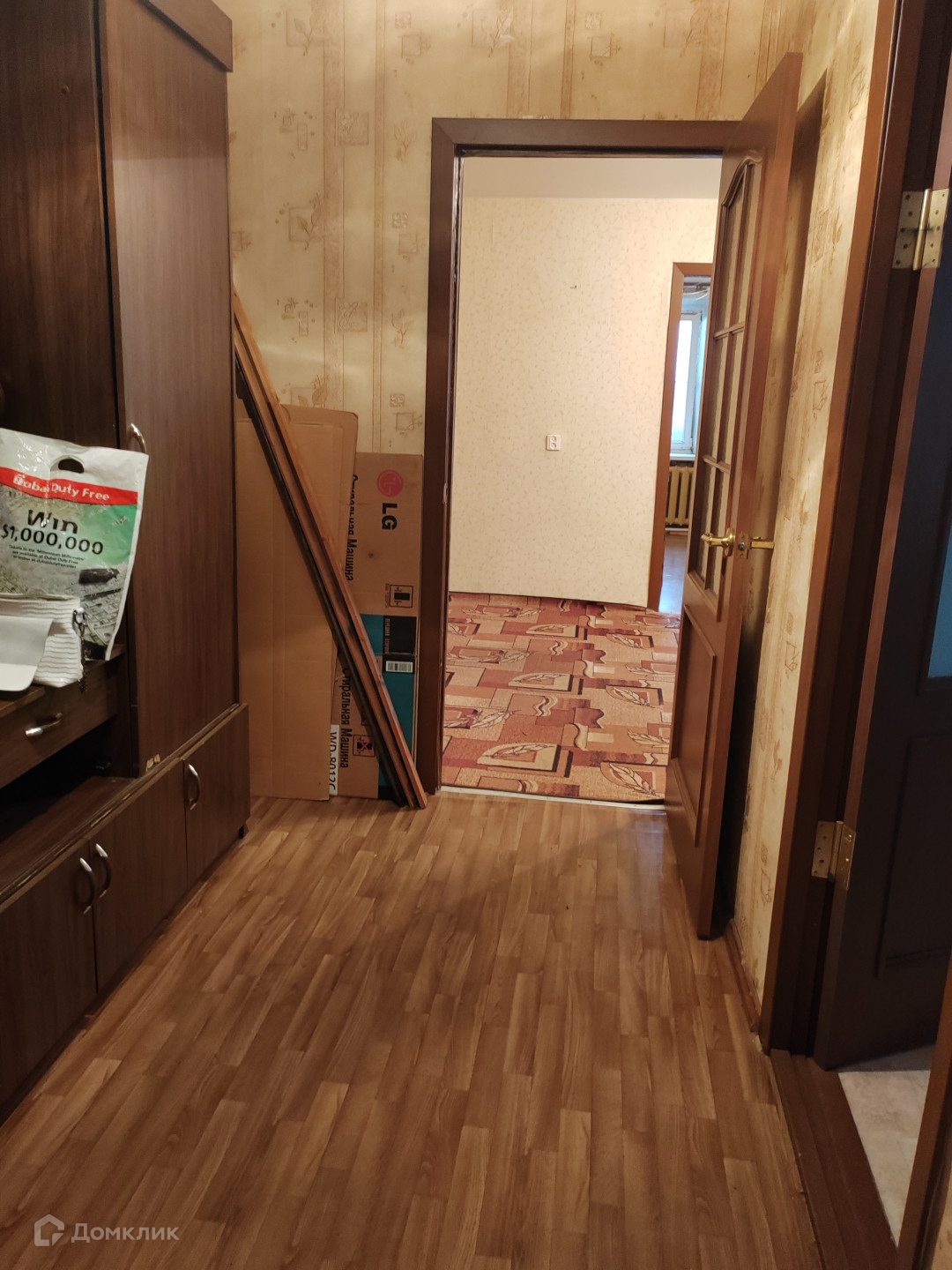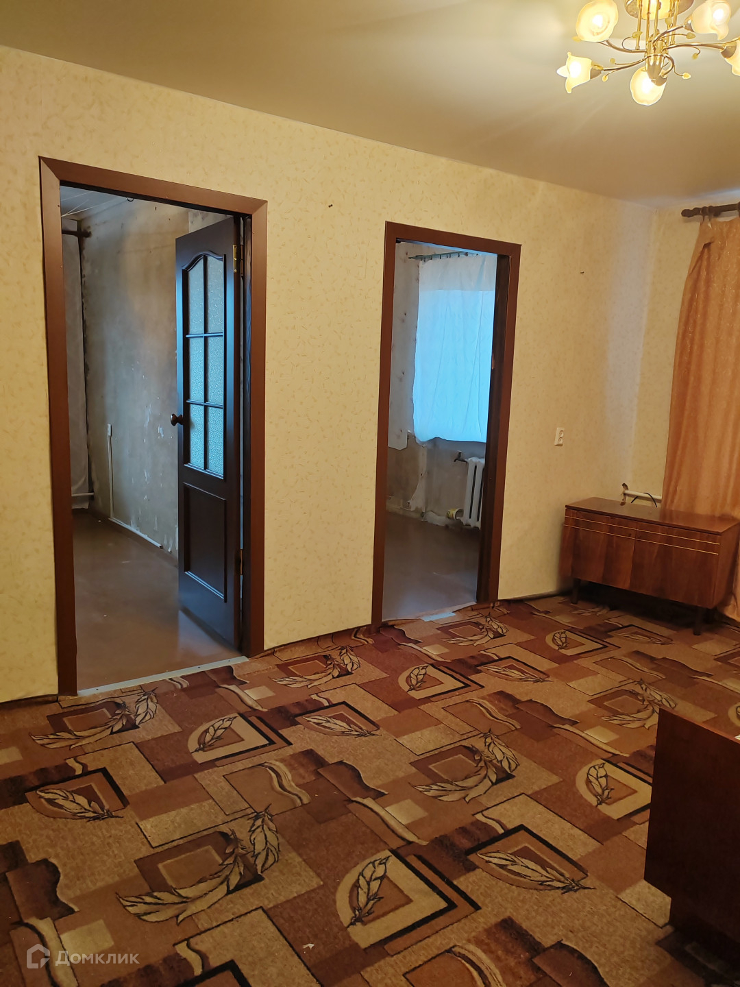 Квартира требует косметики, давно никто не живет. Комнаты смежные, но не маленькие.
