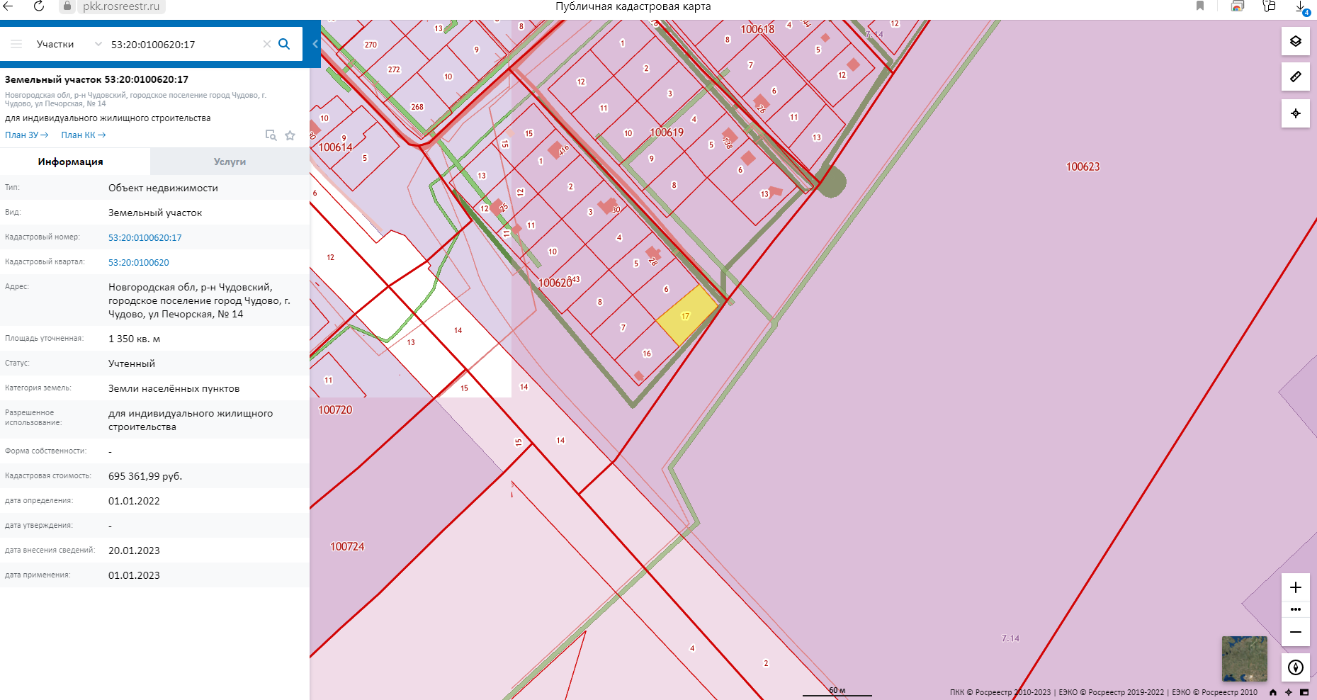 Кадастровый номер земельного участка 53:20:0100620:17