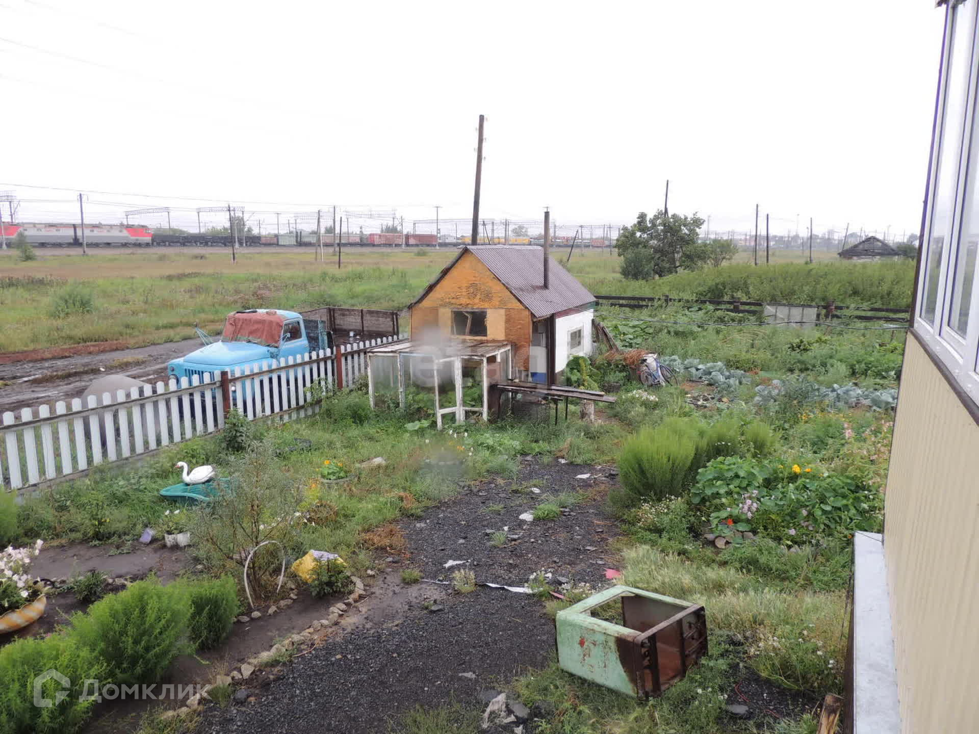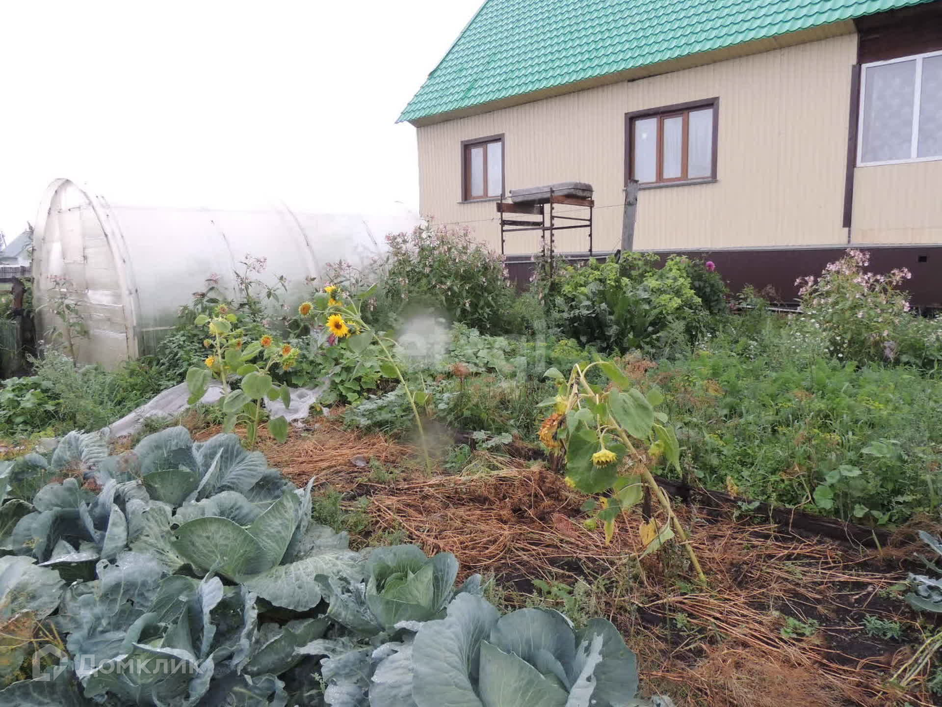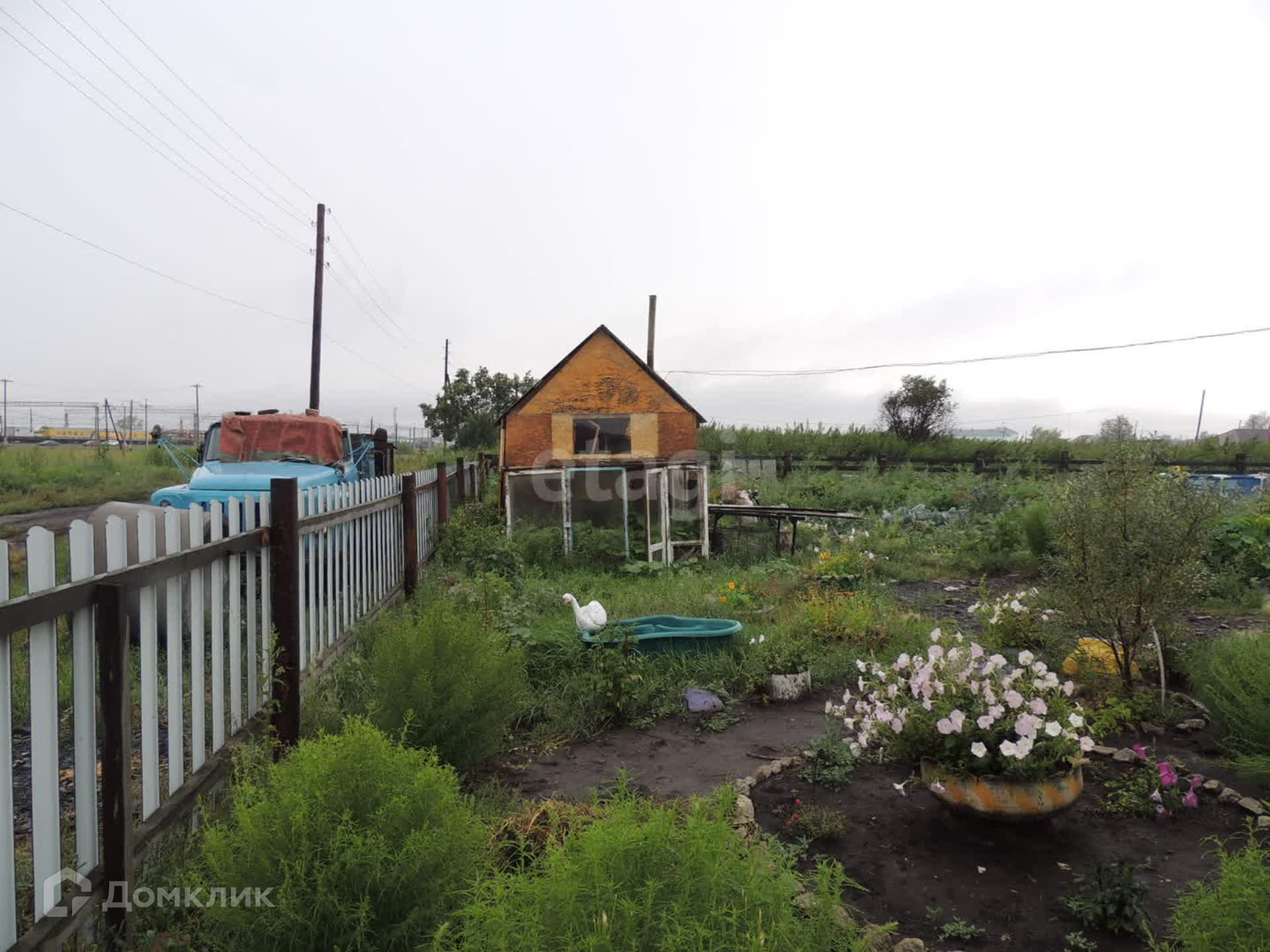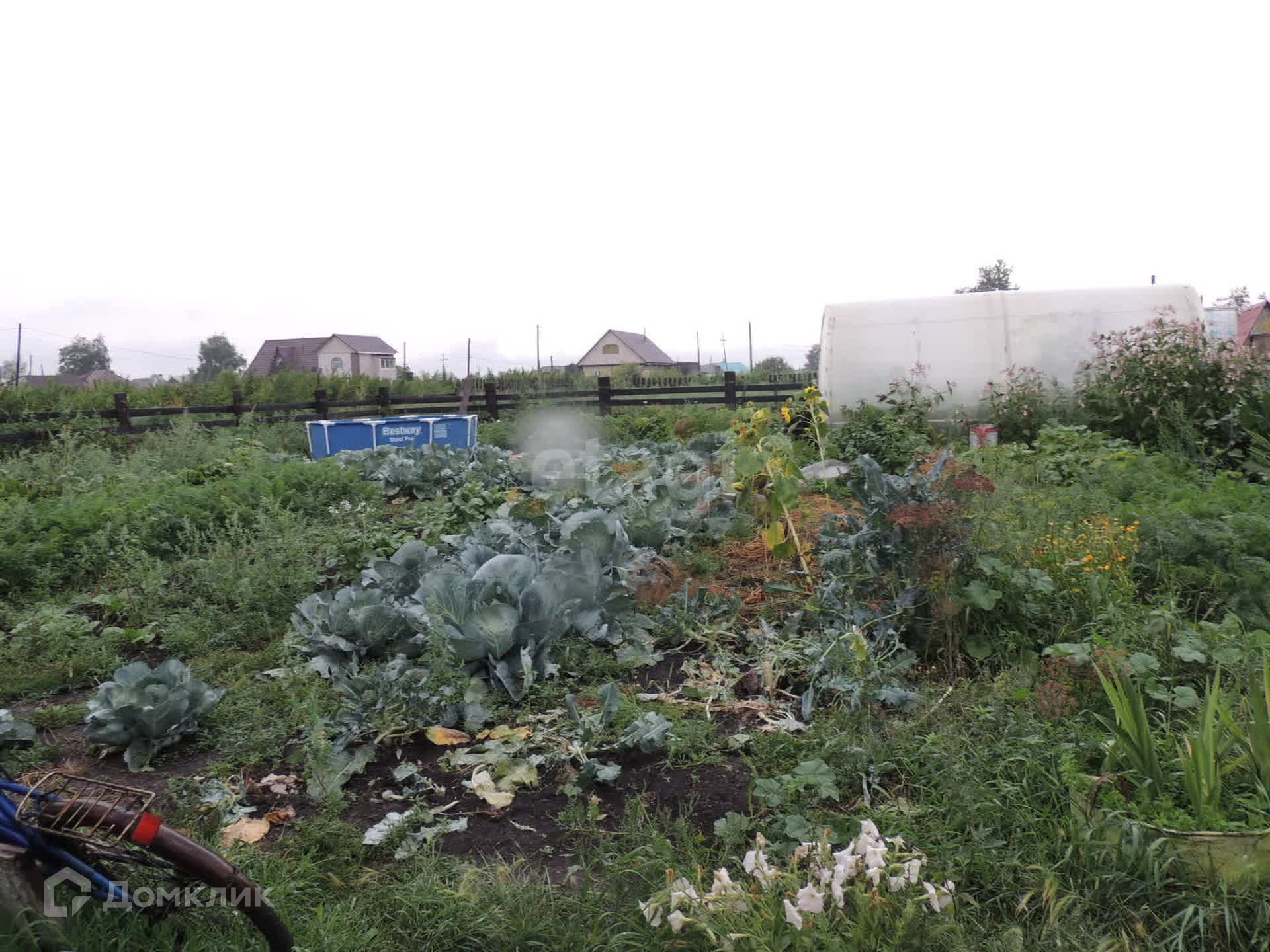 На участке: баня, углярка, теплица, хозблок. Отгорожены зоны под огород и под птичник.