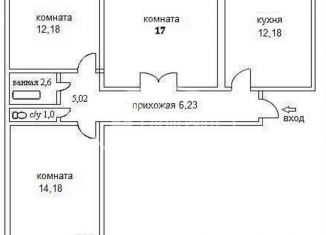 Продается большая комната в трехкомнатной квартире, кухня, туалет, ванная общая. Рядом вся инфраструктура дет. сад, школы, поликлиника, сетевые магазины, аптеки, остановки. Возможна продажа под мат капитал, субсидия 450 000 за 3 ребенка. (Номер объекта в базе 346094) |