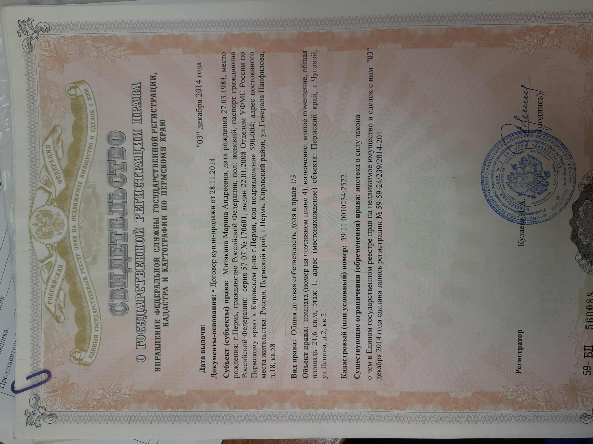 город Чусовой улица Ленина 2 квартира 2 на 1 этаже 4-х этажного дома. В квартире 4 комнаты. Проживающих и прописаных нет.