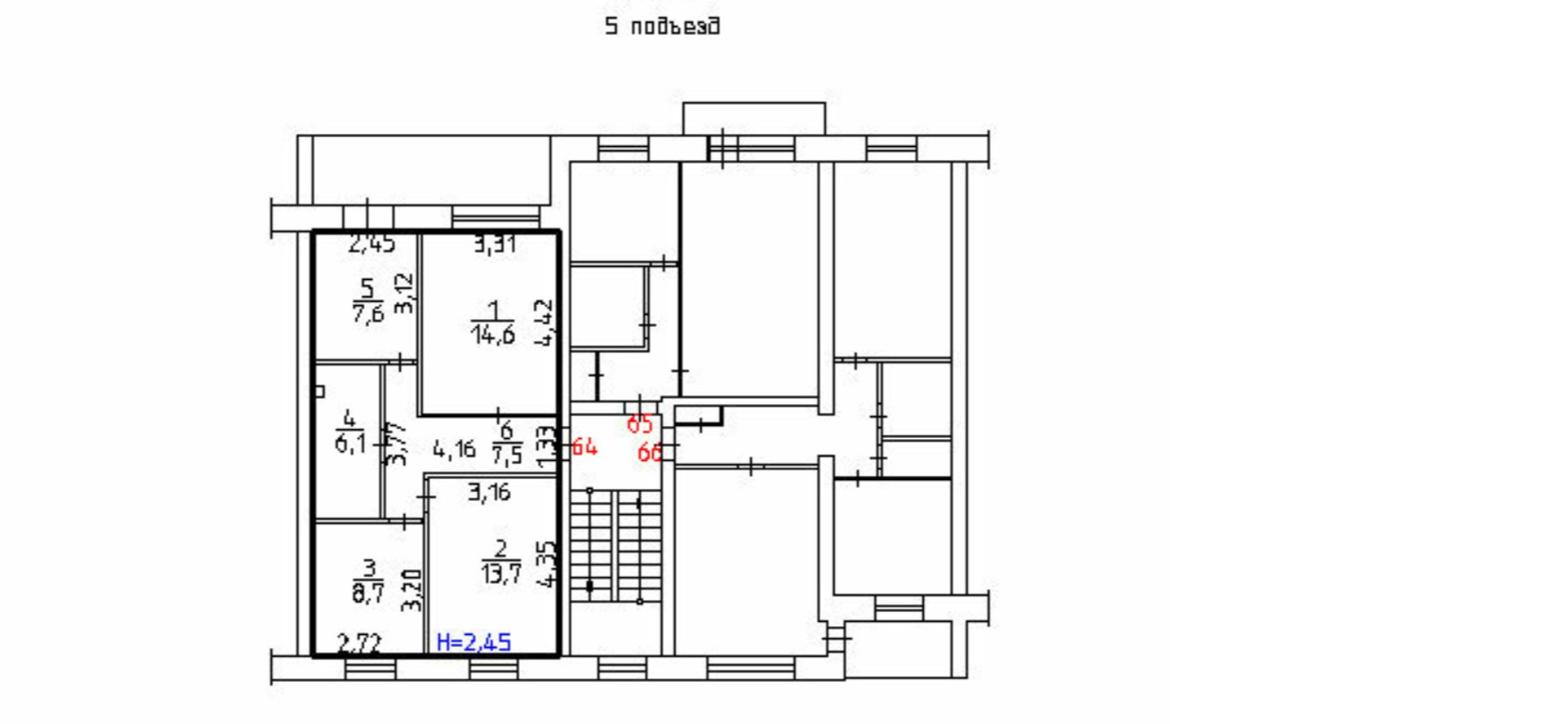 Общая площадь 58.2 м2