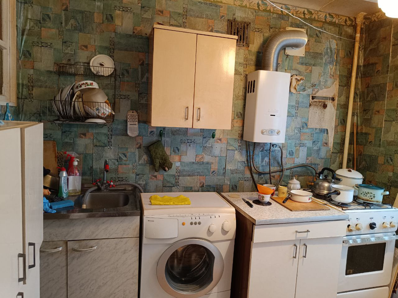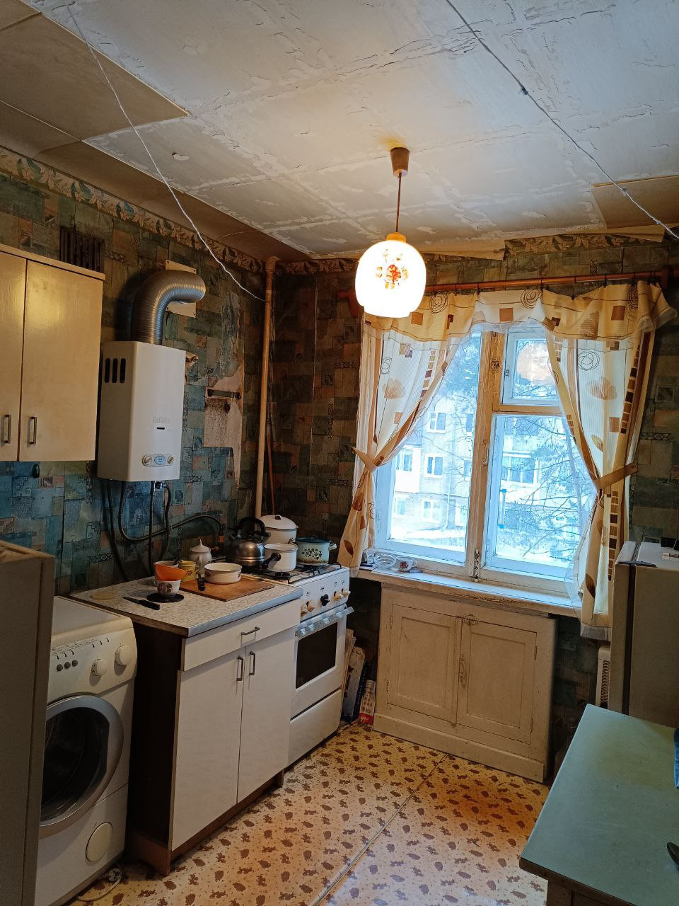 Газовая колонка, хрущевский холодильник, большая кладовка, обычное состояние, требуется ремонт
