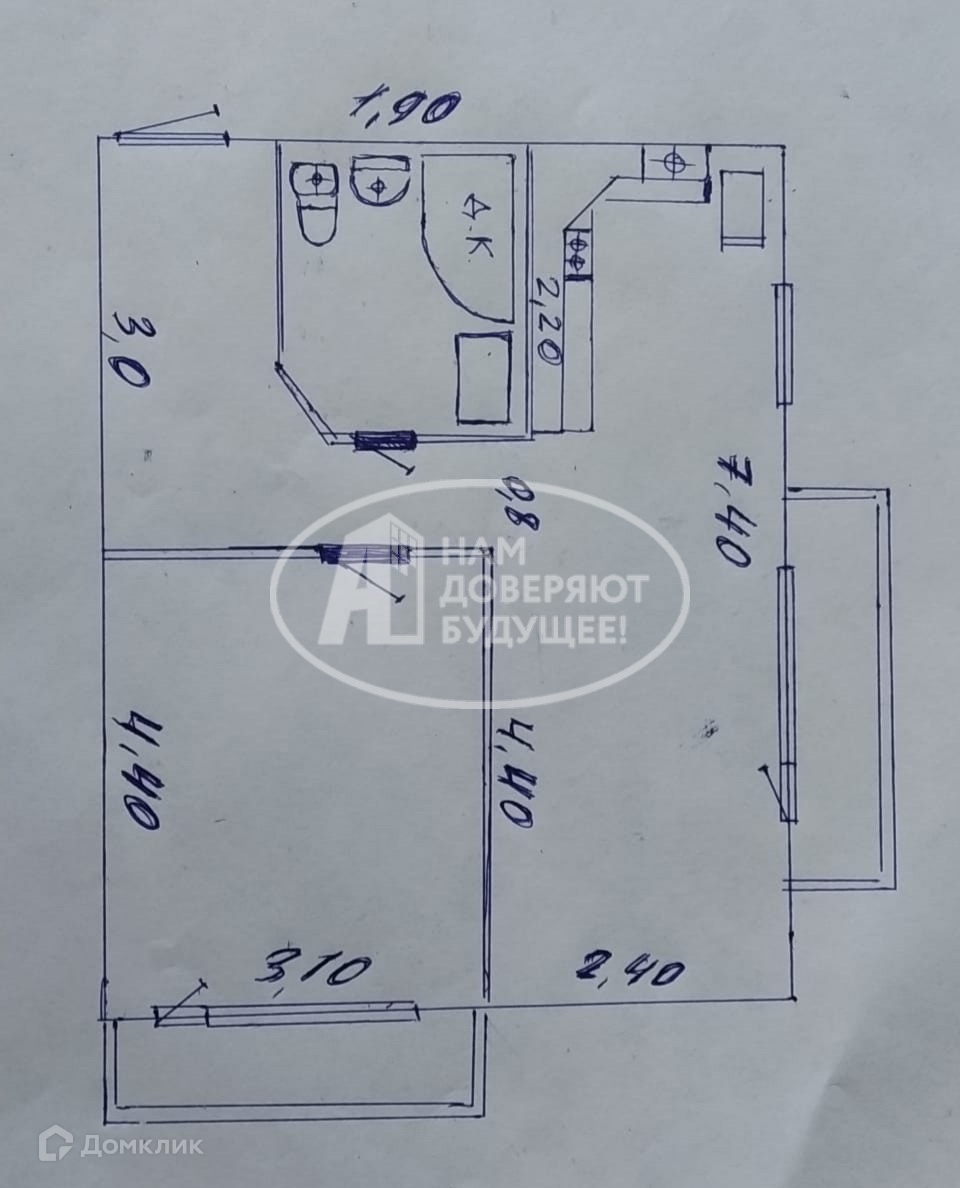 Общая площадь 42.4 м2