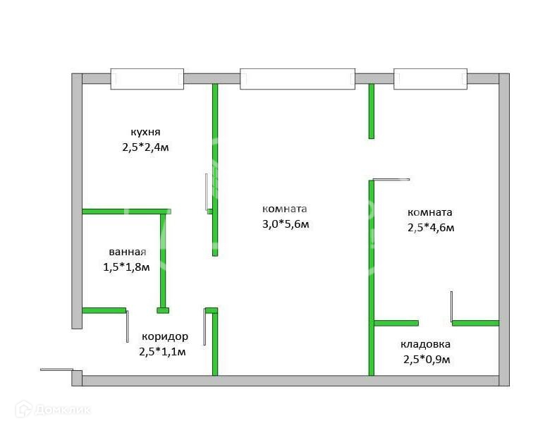 Общая площадь 41.6 м2
